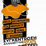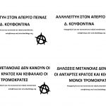 Αλληλεγγύη στους/ις κρατούμενους/ες αγωνιστές/στριες απεργούς πείνας στις Ελληνικές και Τούρκικες φυλακές Αλληλεγγύη στις 5 συντρόφισσες/ους που συνελήφθησαν στις 05/10 Το υπάρχον εξουσιαστικό σύστημα ανελευθερίας επιλέγει τον εγκλεισμό σαν τρόπο <<σωφρονισμού>> και αναμόρφωσης των υποκειμένων με την κανονικότητα. Οι φυλακές ανά τον κόσμο αποτελούν τα σημεία εκείνα που συσσωρεύεται και διογκώνεται η καταπιεστική, εκμεταλλευτική και ανελεύθερη […]