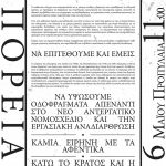 Μετά το κάλεσμα στη διακλαδική – διασωματειακή διαδήλωση την Παρασκευή 28/5 στα Χαυτεία, συγκροτήθηκε αναρχικό μπλόκ με παρουσία αρκετού κόσμου. Η πορεία κινήθηκε στους κεντρικούς δρόμους και κατέληξε στα Προπύλαια. Την ίδια μέρα έγινε παρέμβαση στα Εξάρχεια, ενώ την επόμενη (29/05) στην Κυψέλη, όπου μοιράστηκε το κείμενο της συνέλευσης σε χώρους εργασίας, περαστικούς και πετάχτηκαν […]