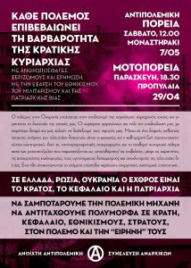 O πόλεμος στην Ουκρανία εντάσσεται στην αναδιανομή της παγκόσμιας κυριαρχικής ισχύος και γιγαντώνει τη δυστοπία της εποχής μας. Οι κυρίαρχοι οργανώνουν και πάλι την υποδούλωσή μας, με χειρότερα δεσμά και μας καλούν να διαλέξουμε τους σφαγείς μας. Μέσα σε ένα διαρκές καθεστώς έκτακτης ανάγκης των τελευταίων δεκαετιών, όπου οι κοινωνίες και η καθημερινή ζωή στρατιωτικοποιούνται συστηματικά. Από τις “αντι”τρομοκρατικές σταυροφορίες και τον σταθερό συνοριακό πόλεμο κατά των μεταναστ(ρι)ών που παρουσιάζονται ως “ανεπιθύμητοι/-ες εισβολείς”, μέχρι τις καραντίνες, τις απαγορεύσεις κυκλοφορίας, τους υγειονομικούς διαχωρισμούς και αποκλεισμούς της τελευταίας διετίας. Ενώ ήδη ανακοινώνονται τα επόμενα επεισόδια “κρίσεων”: ενεργειακή, οικονομική, επισιτιστική…