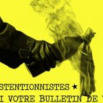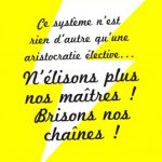 Affiche créée en 2014. Absention. Ce système n’est rien d’autre qu’une aristocratie élective… N’élisons plus nos maîtres ! Brisons nos chaînes ! Révolution. [PDF version A3.]