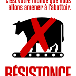 Affiche créée en 2016. Gestionnaires de la misère, c’est votre monde que nous allons amener à l’abattoir. Résistance contre les fermes-usines. [PDF version A3 couleur | PDF version A3 noir & blanc.]
