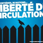 Affiche créée en 2013. Solidarité avec les migrant·es ! Détruisons les frontières de ce monde capitaliste et autoritaire ! [PDF version A2 | PDF version A4.]