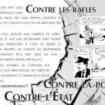Affiche créée en 2013 à Paris-banlieue. Plusieurs fois par jour, la police patrouille dans le quartier, rafle des sans-papiers, contrôle et harcèle tou-te-s celles et ceux qui ne marchent pas droit. Tous ces flics, ajoutés aux caméras de vidéo-surveillance et aux lois sécuritaires sont autant d’outils qui permettent à l’État de mener la guerre aux […]