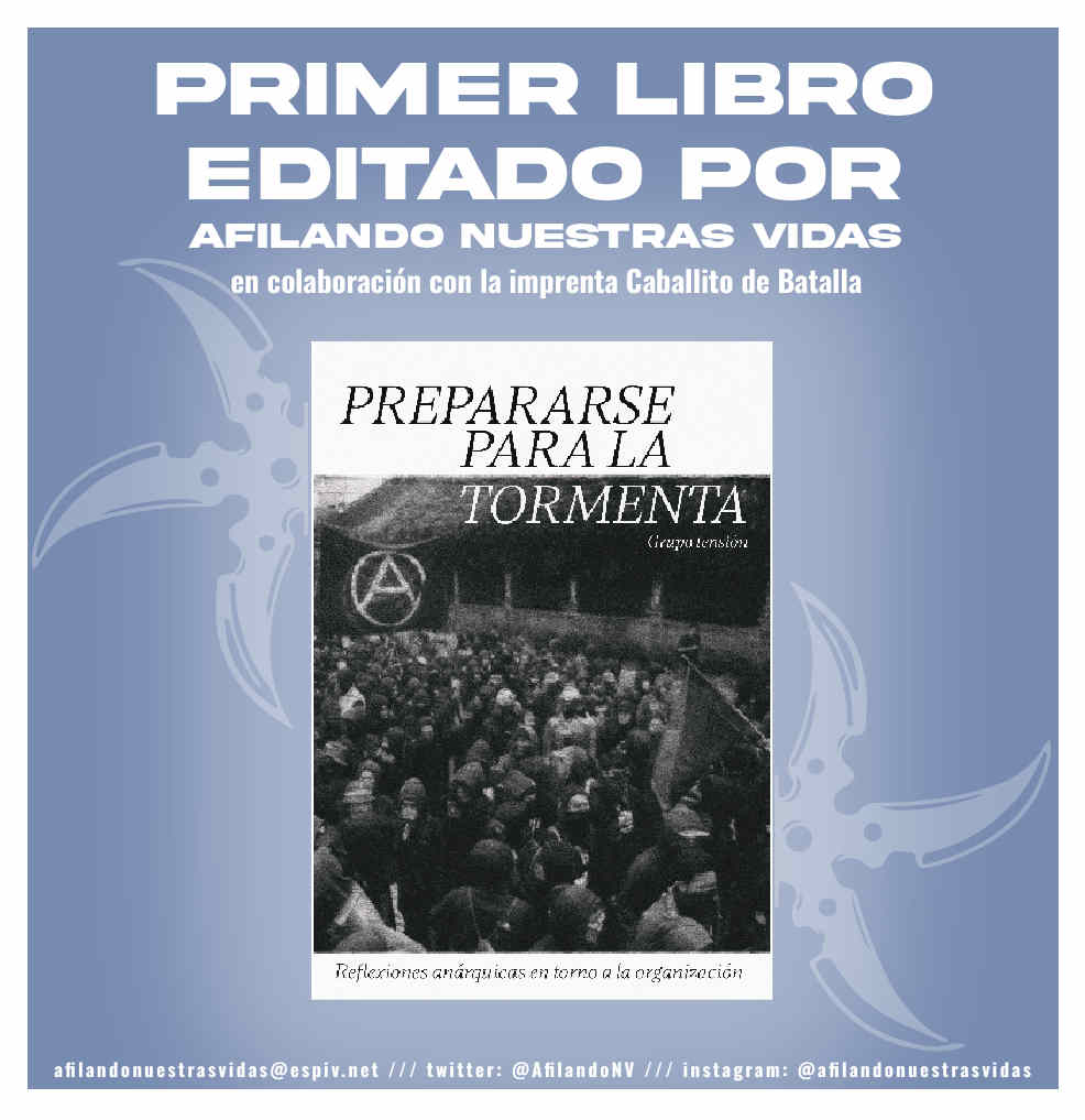 Como parte de nuestro ciclo de formación traemos a la editorial Afilando nuestras vidas, editorial y distribuidora de corte insurreccionalista que defiende el conflicto y el ataque directo al Estado, al sistema y sus estructuras como única forma de liberación.