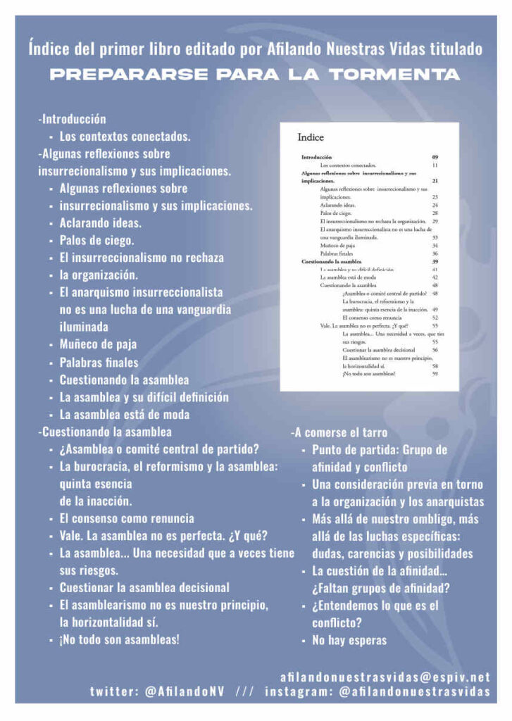 Prepararse para la tormenta. Reflexiones anárquicas en torno a la organización. Grupo Tensión Editado por Afilando Nuestras Vidas Madrid, 2023