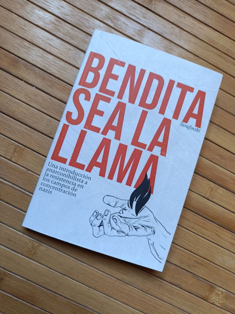 Bendita Sea la Llama Una intoducción anarconihilista a la resistencia en los campos de concentración nazis Autore: Serafinski Año: 2024 Precio: 10€ Categorías: Ensayo, Anarquismo 158 pag. Resistencias y anarconihilismo