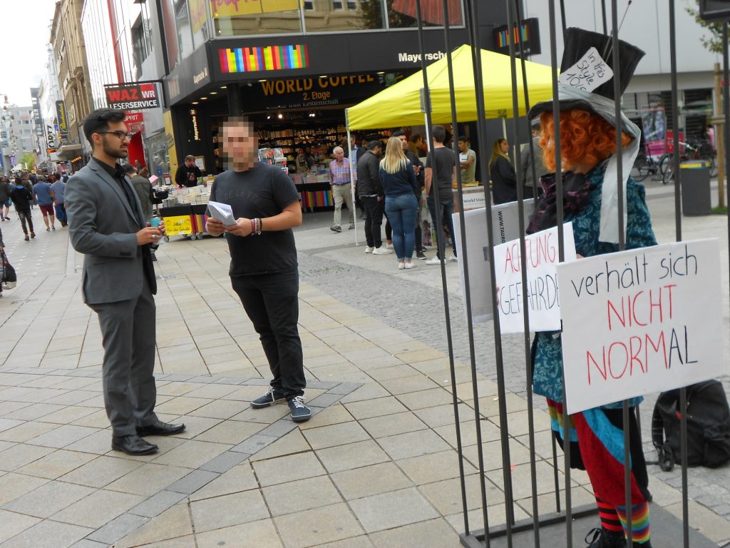 An einem herrlichen Spätsommer Sonntag machten wir uns auf nach Menden, um anlässlich unserer 2ten anarchistischen Wanderung die Natur der Hönnestadt zu erkunden. Nachdem sich alle wanderfreudigen Menschen am Bahnhof Menden getroffen hatten, zogen wir zu neunt los in Richtung Innenstadt. Hier trafen wir auf das “Event” Menden a la Carte und durften kurz den Klängen des Shanty-Chores lauschen. Noch viel später im Wald sollten uns immer wieder Fetzen dieser Musik beglücken. Als nächstes schauten wir uns die Dorte-Hilleke Bücherei an. Das ehemalige Rathaus ist nach einer Frau benannt, die im Jahr 1631 in einem Hexenprozess der Folter trotzte. Später sollten wir am Hexenteich auf weitere Spuren der Hexenprozesse treffen. Neben der Bücherei befindet sich eine Skulptur, die Auszüge aus der Stadtgeschichte darstellt. Nun verließen wir die Innenstadt und stiegen bergan in Richtung Hexenteich. Hier stießen wir auf einer Art Pilgerweg auf einige religiöse Symboliken, die zu unserer Freude auf ein Mal schwarze Fahnen trugen. Weiter ging es den Berg hinauf und durch den Wald. Unterwegs ließen wir uns viel Zeit die Natur zu erkunden und hatten auch diesmal wieder eine erfahrene Begleitung, die uns Fauna und Flora erklären konnte. Nach einigen Stunden wandern erreichten wir am Nachmittag den Hexenteich. An diesem Ort wurde im 16. und 17. Jahrhundert angeblichen Hexen der Prozess gemacht und die Menschen wurden hier dann auch gleich ertränkt. Leider fehlt am Teich jeglicher Hinweis auf die dunkle Geschichte des Ortes. Zu unserem bedauern konnten wir auch die Schildkröten Population, die hier leben soll nicht sichten. Unsere Wanderung neigte sich nun dem Ende zu und wir stiegen den Berg hinab, zurück in Richtung Bahnhof. Es war erneut ein sehr schöner Ausflug und wir freuen uns schon auf viele weitere. Die nächste Wanderung ist für den 7.10. vermutlich nach Haltern am See geplant.