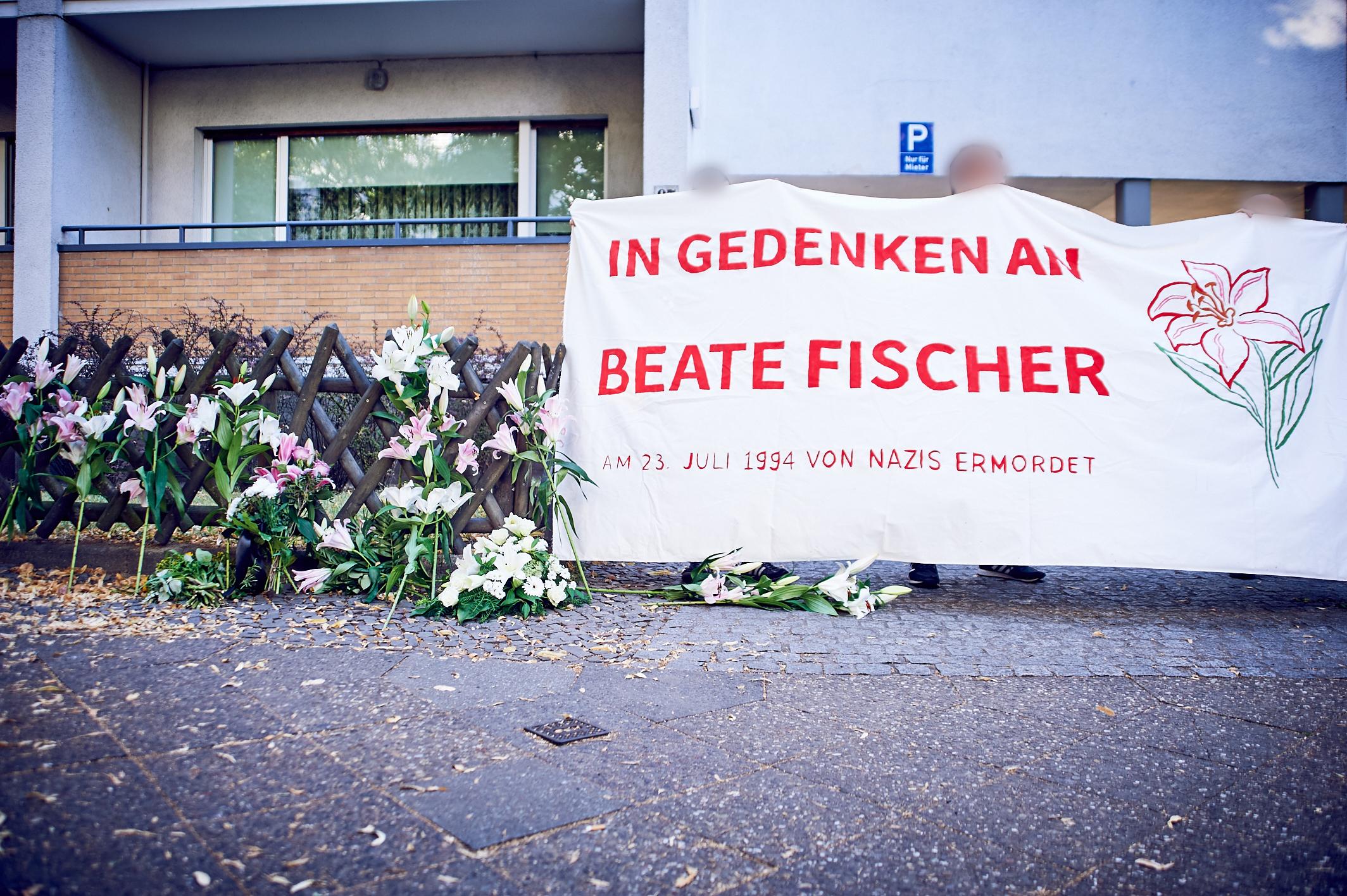 Ca. 50 Menschen nahmen in Berlin Reinickendorf am 23.07.2019 an der Gedenkkundgebung für die 1994 von Neonazis ermordete Beate Fischer teil. In Redebeiträgen wurde rechte Gewalt, Gewalt gegen Frauen und die Stigmatisierung von Sexarbeit|er*innen thematisiert.