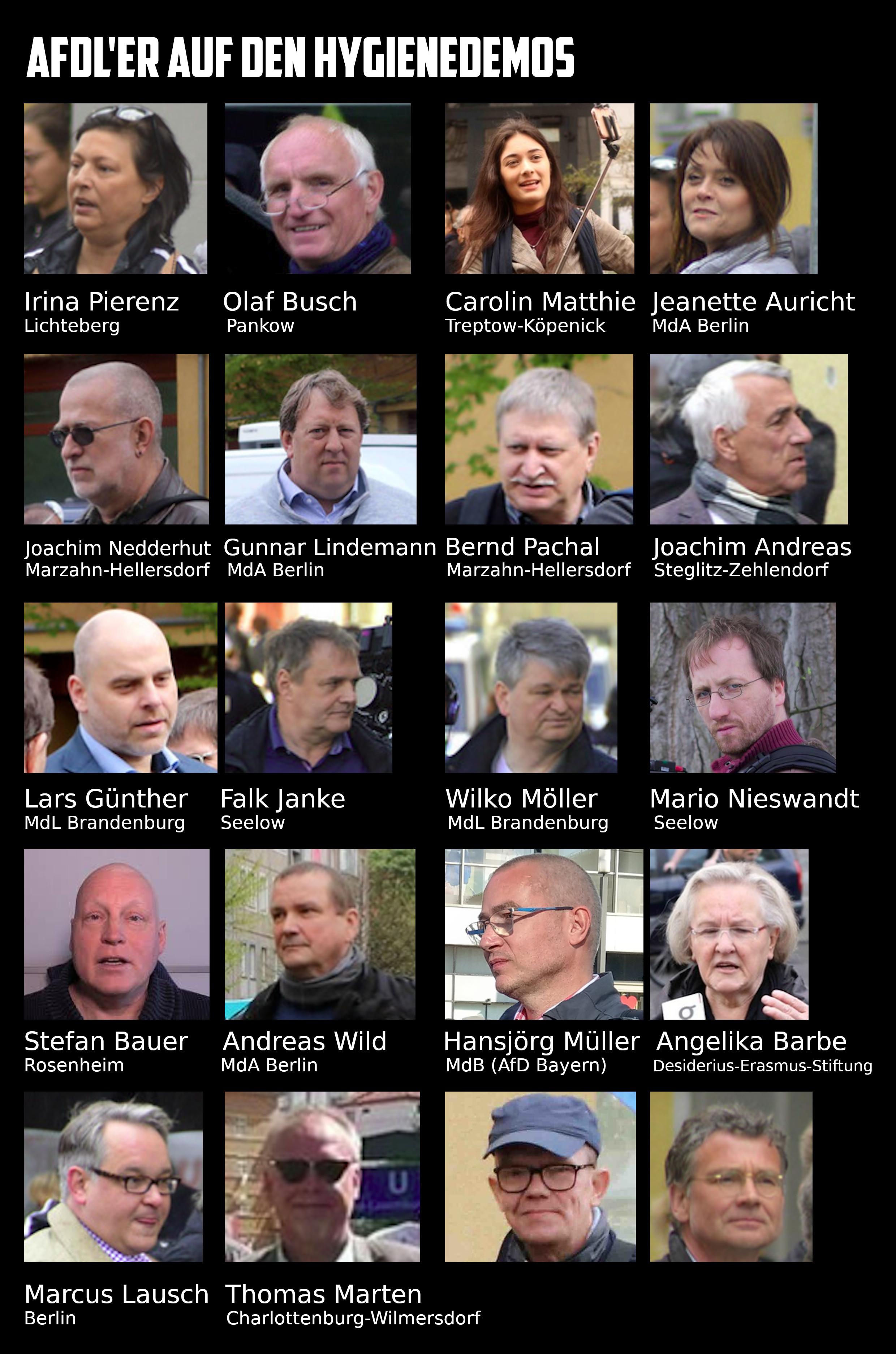 Alphabetische Aufzählung der AfD-Politiker*innen und Sympathsant*innen auf den „Hygiene“-Protesten in Berlin: