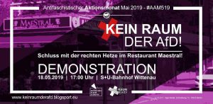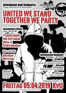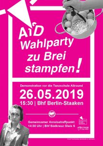 Quelle: http://keinraumderafd.blogsport.eu/2019/05/25/kein-tanz-mit-den-neuen-rechten-afd-wahlparty-zum-desaster-machen-update/