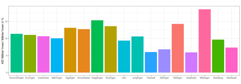 Der Punkt ist, dass Wiblingen mehrfach als die AfD- Hochburg in Ulm dargestellt wurde und wird – das sehen wir anhand der Daten so nicht bestätigt.