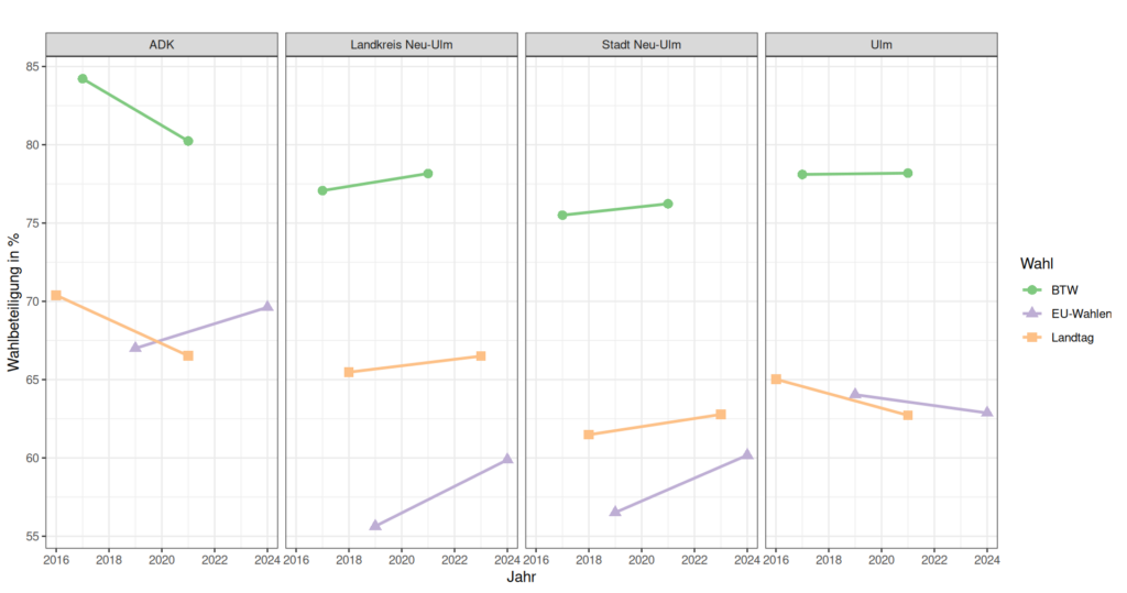 Dabei blicken wir auf Ulm, den Alb-Donau-Kreis, die Stadt Neu-Ulm und der Landkreis Neu-Ulm: Der Vergleich zeigt ein übergreifendes Muster und führt uns zu mehreren Thesen.