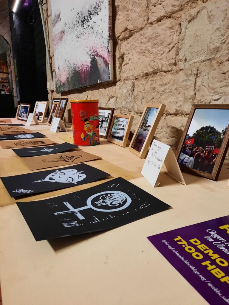 Rund um den Vortrag gab es einen Infostand mit Fascho Memory und einige Prints & Bilder von Aktionen aus diesem Jahr.