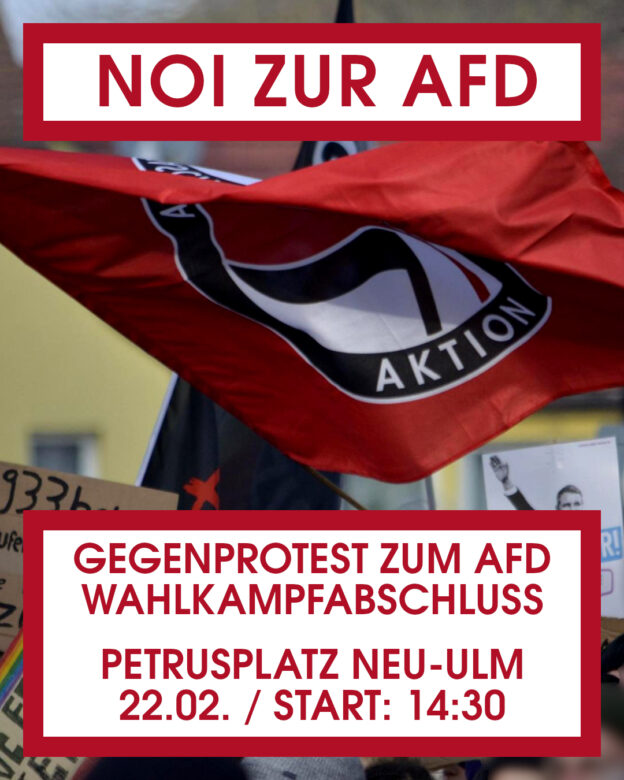 Am Mittwoch, den 09.04.2025 jährt sich der Tag der Ermordung des Widerstandskämpfers Georg Elser zum 80. Mal. Zur Mahnwache in Heidenheim des Bündnis Gegen Rechts Heidenheim möchten wir gemeinsam anreisen. Wir treffen uns um 17:45 Uhr auf dem Vorplatz des Ulmer HBF bei den Bänken, kommt gerne mit!