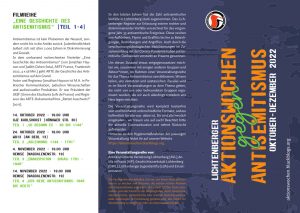 Laut einer Studie, beauftragt durch den Berliner Antisemistismusbeauftragten, aus dem Jahr 2021 gibt es in Berlin 290 Straßen- und Platznamen mit antisemitischen Bezügen. In der Publikation sind auch Lichtenberger Straßen benannt. Nach Vorstellung der betroffenen Straßennamen soll in einer Podiumsdiskussion mit André Wartmann (Antisemitismusbeauftragter Lichtenberg); Lev Shulov (Fach- und Netzwerkstelle Licht-Blicke / Fachstelle TKVA – Treptow-Köpenick für Vielfalt und gegen Antisemitismus) und Dagmar Poetzsch (Arbeitskreis Stolpersteine Lichtenberg) über den Umgang mit dieser Problematik gesprochen werden.