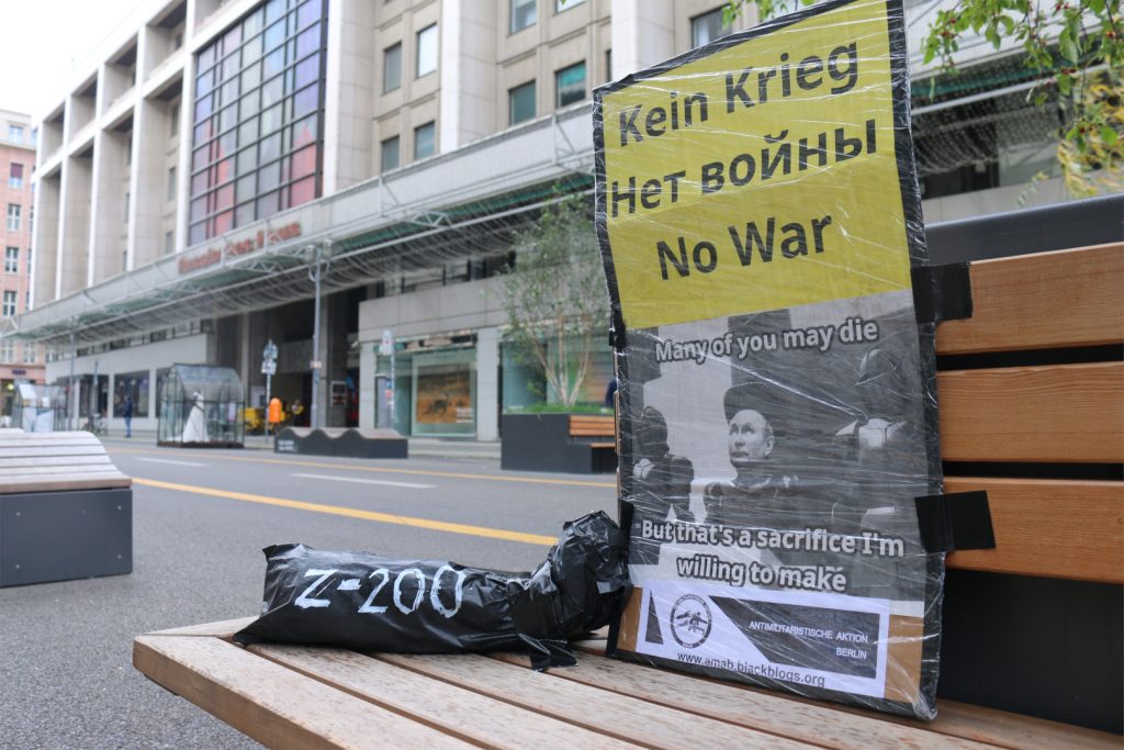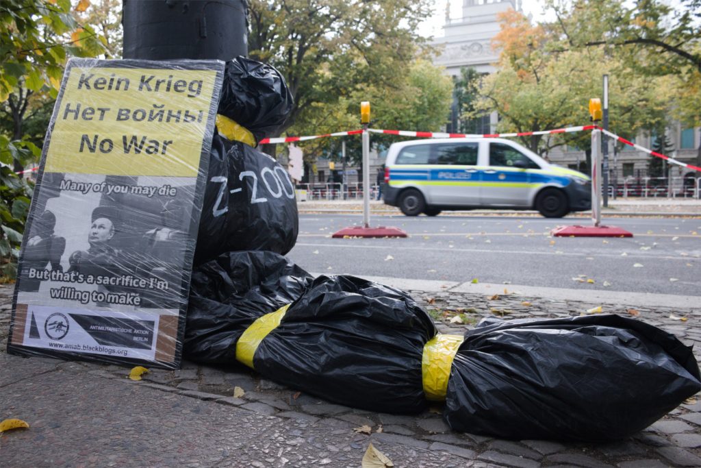 „Das Z-200 steht einerseits für den verbrecherischen Angriff der russischen Regierung, aber auch für den Frachtcode des sowjetischen Militärs für Leichensäcke: Cargo 200“, erklärt Jan Hansen, Sprecher*in der amab. Mit der Aktion möchte die Antimilitaristische Aktion Berlin das Personal der russischen Botschaft daran erinnern, dass mit jedem Tag, den ihre Regierung den Krieg fortsetzt, Menschen sterben. „Feiert krank, desertiert, macht Dienst nach Vorschrift, sabotiert, spioniert, unterstützt die Opposition: Hört auf, das Morden in der Ukraine zu unterstützen“, schlägt Jan Hansen den Botschaftsangehörigen vor.