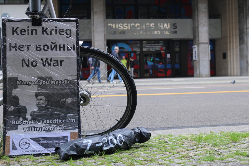 Vor dem russischen Kulturinstitut gabs hingegen Stress. Eine Mitarbeiter*in störte sich an der Kunstinstallation und drohte damit, die Polizei zu rufen.