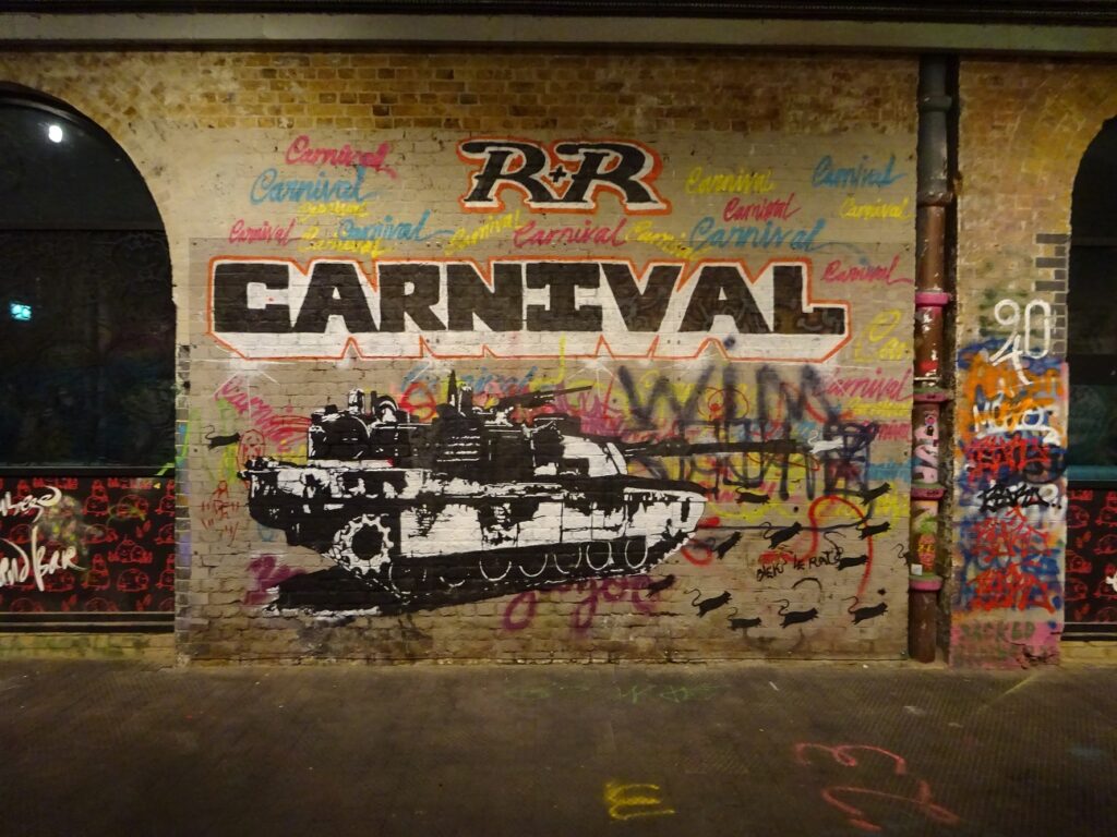 Nochn Streetart-Panzer. Unter der Victoria Station.