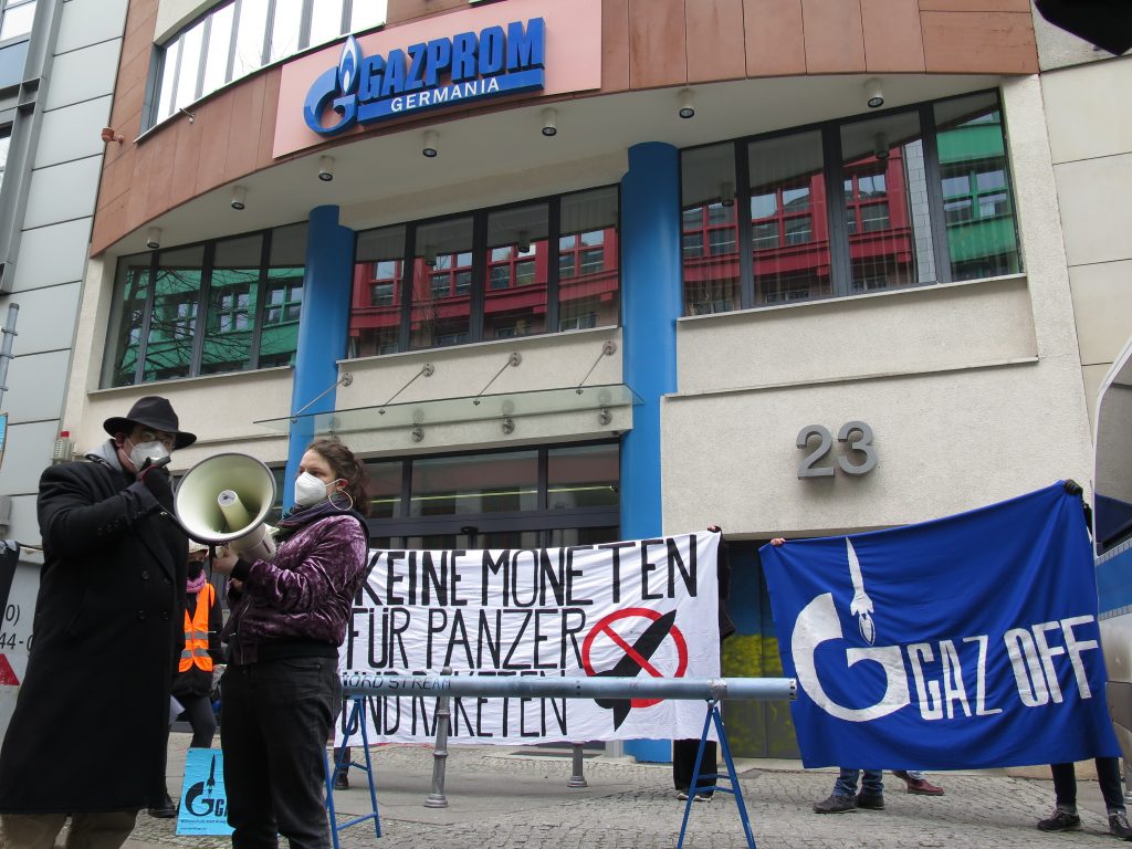 Im März 2022 veranstaltete die Gruppe vor der Zentrale von GAZPROM ein symbolisches Pipeline-sägen und forderte den Stopp der Finanzierung des russischen Krieges und die Umstellung auf Erneuerbare Energien.