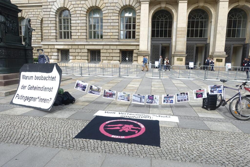 „Dass der Berliner Geheimdienst uns wegen Protestaktionen gegen den russischen Angriffskrieg und seine Profiteure beobachtet, ist ein Skandal!“ sagt Jan Hansen, Sprecherin der Antimilitaristischen Aktion Berlin. „Deshalb fragen wir: Warum beobachtet der Geheimdienst Putin-Gegnerinnen?