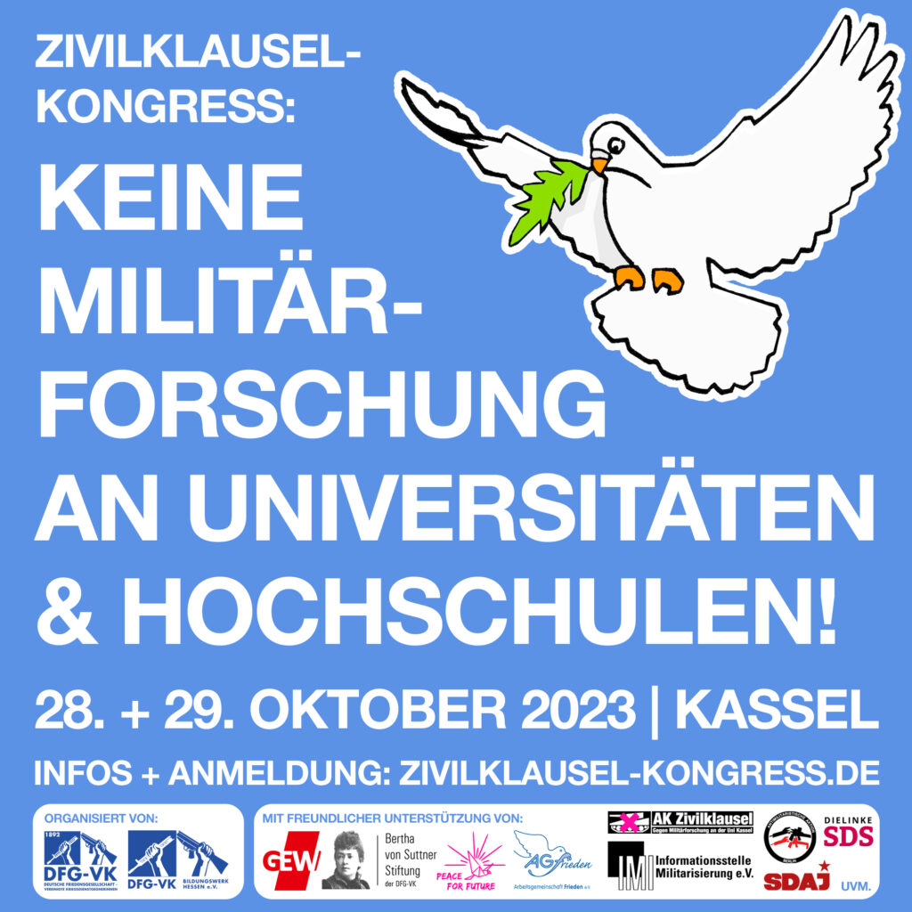 Alle Informationen zum Kongress sowie die Möglichkeit sich anzumelden gibt es auf: www.zivilklausel-kongress.de