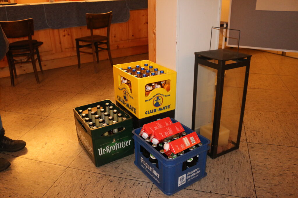 Die Lokalattraktion des Meißners sind zwei Funktürme einer ehemals amerikanischen Militärbasis (haben wir ebenfalls im Nahverkehr gelernt). Diese haben wir leider aufgrund des dichten Nebels und der Dunkelheit nicht zu sehen bekommen :/. Dafür war unsere Nachbarschaft recht gut informiert: Team Stuttgart tauchte erst am Samstag auf, die Fahrerin vom Anrufsammeltaxi riet gleich richtig: „Ach, Sie wollen zu den Berliner*innen!“
