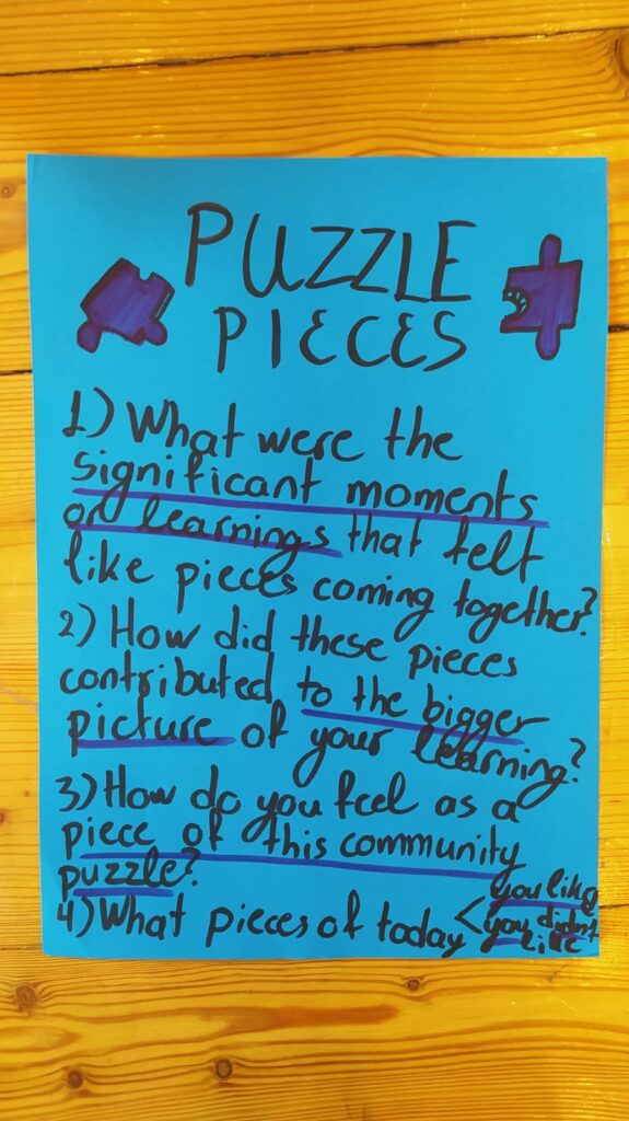 Direkt die erste Session begann mit einer Embodiment/ Meditationsübung, die uns erden und dabei helfen sollte, anzukommen. Danach gab es im Raum verteilt viele Stationen, an denen wir unsere Erwartungen für die Woche sammelten und uns selber und unsere Themengebiete/ politische Arbeit vorstellten. Im nächsten Teil erarbeiteten wir zusammen, welche Regeln wir als Gruppe aufstellen wollten. Ich fühlte mich sehr wohl und gesehen in meiner Vorstellung vom Zusammenleben in einer großen Gruppe, da wir alle einbringen konnten, was uns für die nächste Zeit wichtig sei. Besonders angenehm war, dass dadurch die Hierarchien sehr gering gehalten wurden, da Danai und Thomas sich nicht über uns stellten, indem sie uns z.B. einfach ihre Regeln aufdrückten. Dieser Aspekt hat sich die ganze Woche sehr bemerkbar gemacht, wir sind uns alle auf Augenhöhe begegnet. Egal ob Teamer*innen, SCI-Mitglieder oder Teilnehmende.