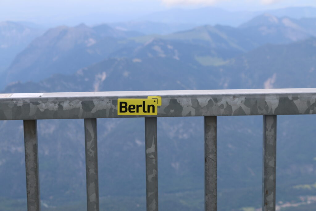 Als nächstes Fotomotiv haben wir uns eine kleine Aussichtsplatform vorgenommen genau zwischen Bergstation am Zugspitzenplatt und der Kapelle dort. Manche Touris die wir dadurch kurzzeitig vom Urlaubsfotos mit tollem Hintergrund machen abhalten freuen sich über unsere Forderungen. Klimaschutz sieht hier jeder ein. Und zu unserer Überraschung kommt auch die Bundeswehr schlecht an.