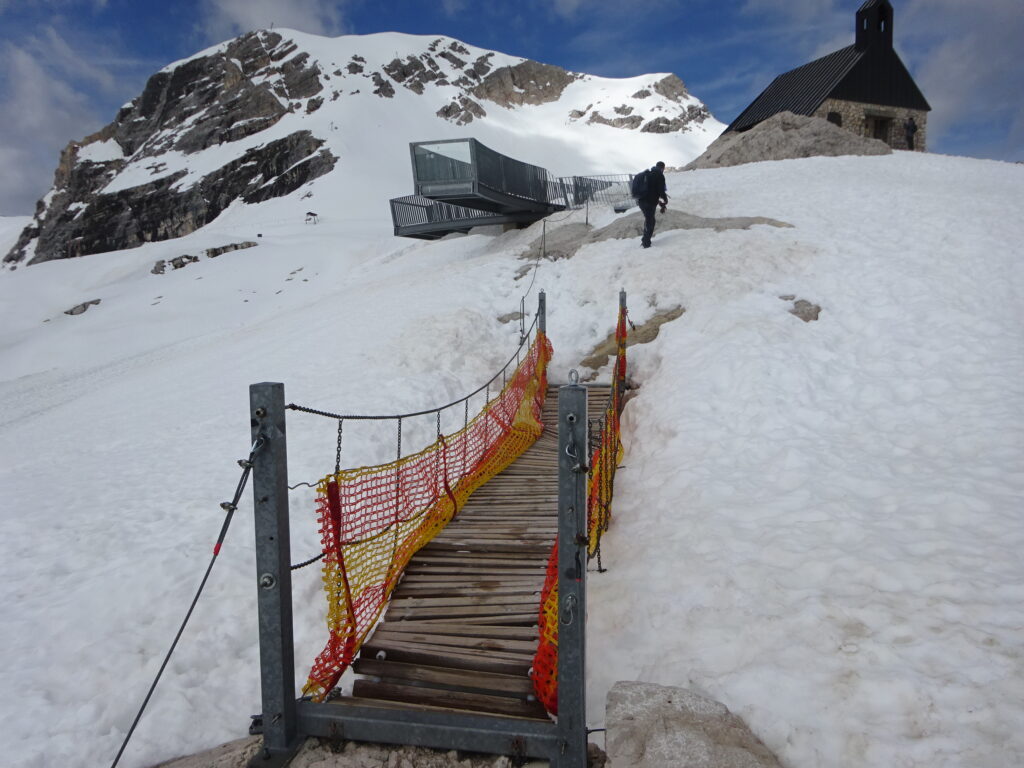Wir machen auch einen kurzen Ausflug nach Österreich. Denn ein Teil der Plattform auf der Zugspitze steht in Östereich. Von der dortigen Gemeinde Ehrwald fährt auch eine Seilbahn zum Gipfel. Die Össis sind aber nicht so Zugspitz-verrückt wie wir. Der Großglockner in Tirol bringt es auf 3798m, mehr als 20 weitere Gipfel im Land sind höher als die Zugspitze.