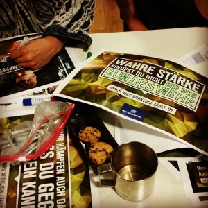 Seinen Abschluss fand der Tag mit einem Vortrag über das kreative Umgestalten von Werbeplakaten/Werbebotschaften. Insbesondere seitdem die Bundeswehr durch einen massiven, extrem teuren Werbefeldzug immer mehr Gehör im öffentlichen Raum erlangen möchte, kann dies eine gute Möglichkeit sein, um kreativ auf die unerträgliche „Mach, was wirklich zählt“-Kampagnen zu reagieren.