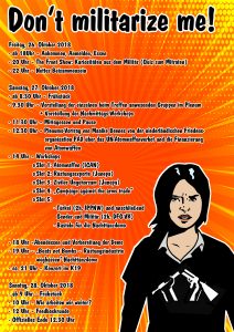 You’re vom 26. bis 28. Oktober 2018 interested in meeting other young people active for peace and antimilitarism? Are you interested in networking with activists from peace organisations and to discuss, how we can come closer to a world without violence and war?