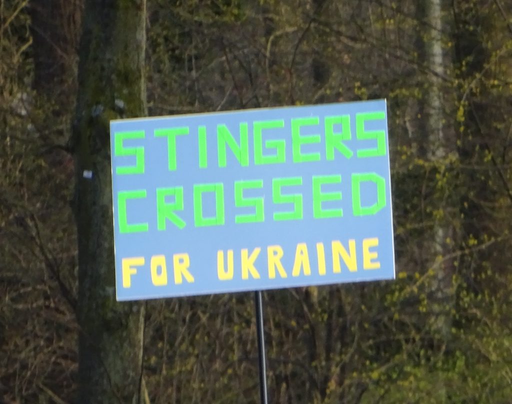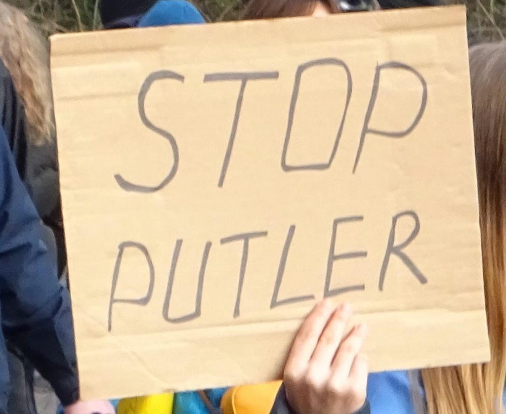 Nicht so schön hingegen ist die Berichterstattung in unseren eigenen Medien. Auf der Seite der DFG-VK ist sogar ein Bild veröffentlicht, wo man ein Schild mit der wenig friedensfreundlichen Botschaft „Stop war – hate Putin“ lesen kann.