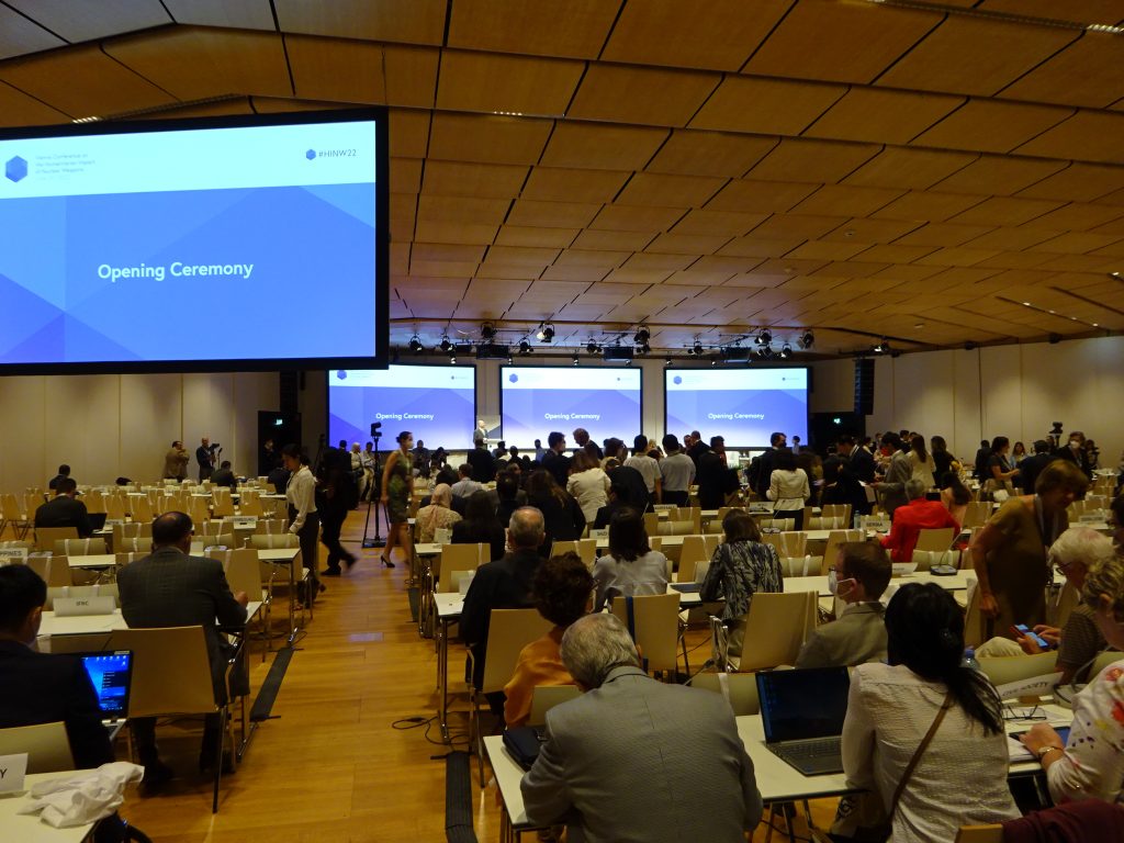 Kido Suechi, Überlebender aus Nagasaki, berichtetet von seinen Erlebnissen als kleines Kind. Suzuka Nakamura, Vertreter*innen der Enkel-Generation, legte dar, wie das Massensterben und die gesundheitlichen Folgen sie bis heute belasten. Sie appellierte an die UNO: „I hope we will all agree that TPNW is not the end point. The end point has to be the elemanation of nuclear weapons. In order for us to get rid of the risk of nuclear weapons, we have to eliminate them.“ Aus einem pazifischen Atonmbombentestgebiet war Danity Laukon angereist und berichtete, wie die Waffentests bis heute die Leben der Menschen bedrohen.