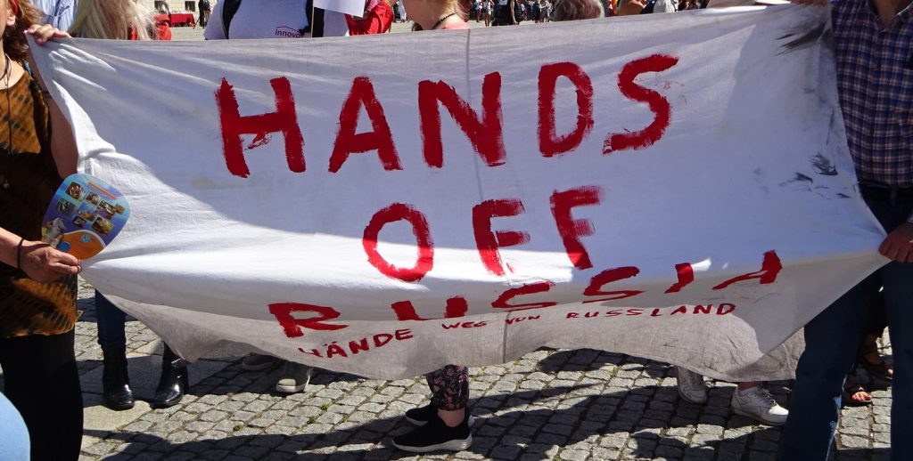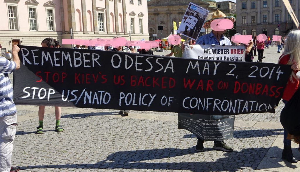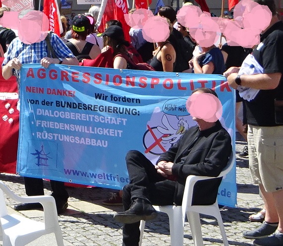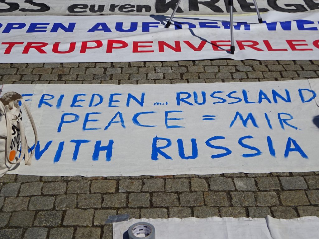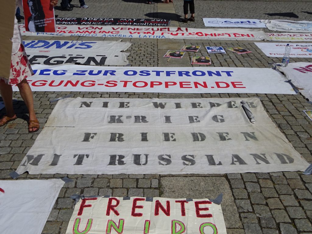 Entsprechend gruselig ist vertretende Meinungsspektrum. „Friede mit Russland“ dominiert die Veranstaltung: