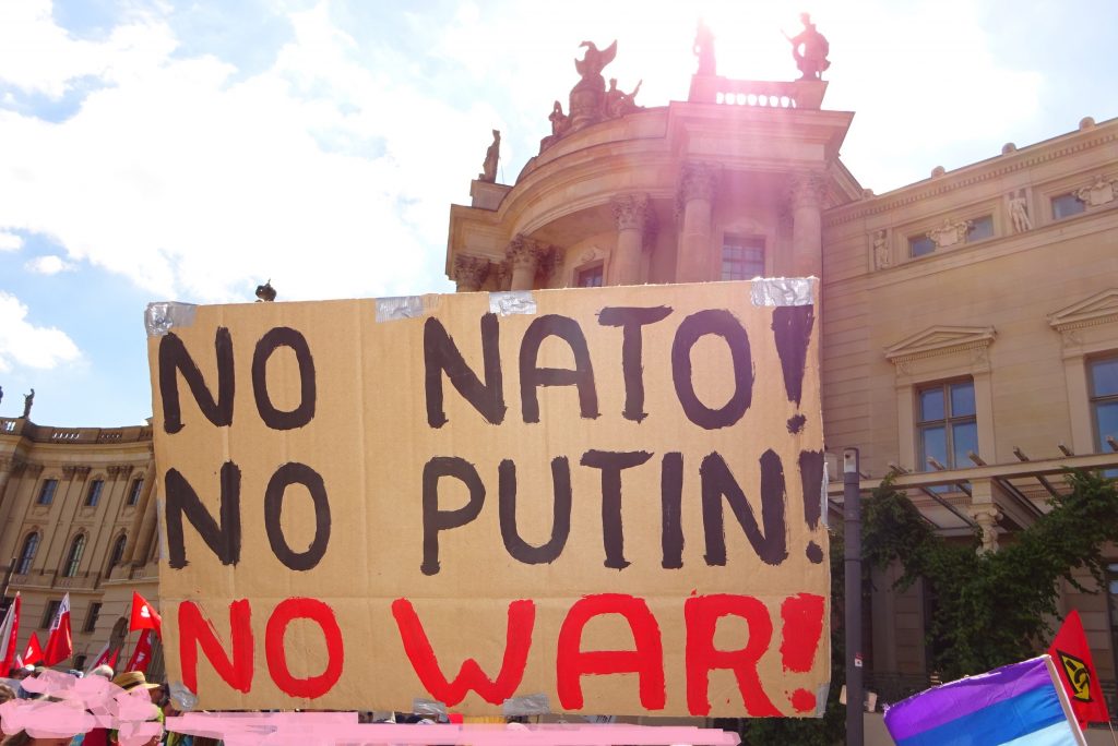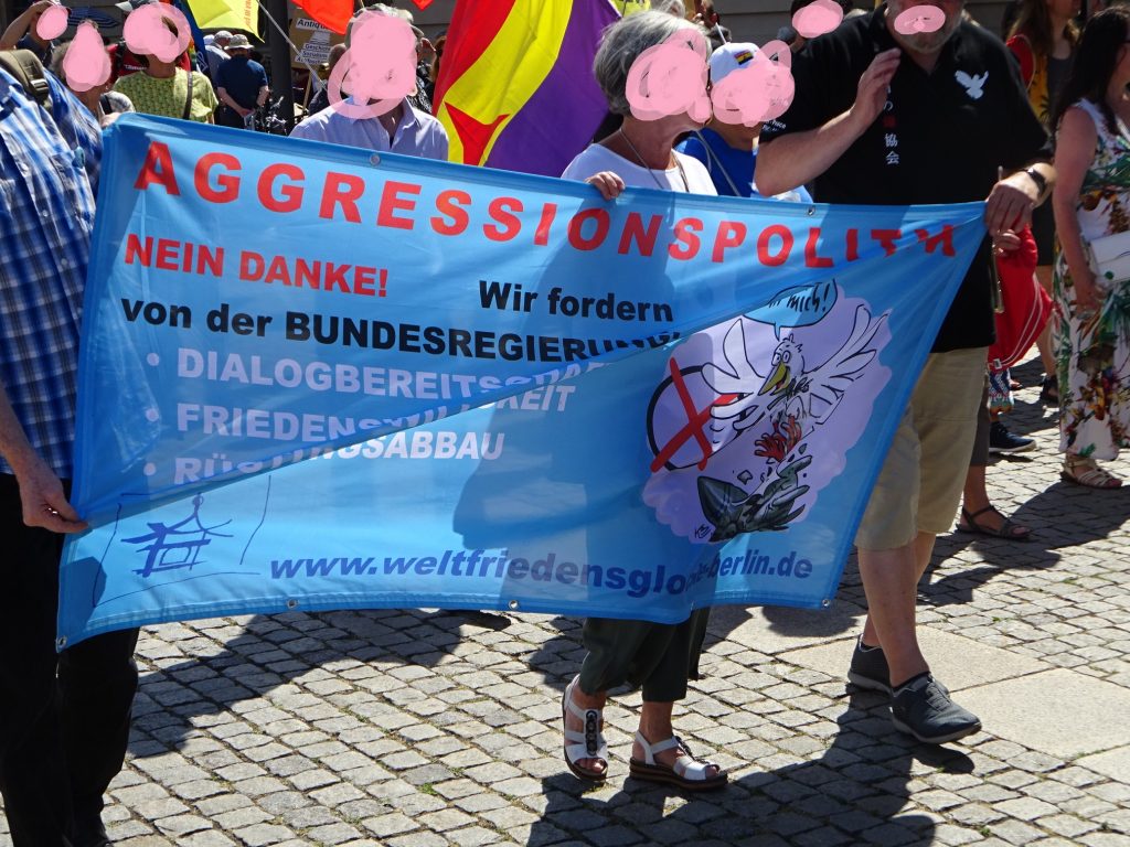 Gut, dass der Bundesverband der DFG-VK im Gegensatz zu den Landesverbänden NRW und Bayern nicht zur Demo aufgerufen hat. Denn inhaltlich war die Demo eine Katastrophe. Für die Russlandfreunde in der DFG-VK, denen die Menschenrechtslage in Russland lange egal war, war der 24. Februar zum Glück ein zumindest zeitweise recht heilsamer Schock. Dies zeigt die Abschlusserklärung des Buko 2022, wo es gleich im ersten Absatz heißt: (Wir) „fordern den sofortigen Stopp der völkerrechtswidrigen Angriffe Russlands auf die Ukraine: Wir protestieren gegen die imperialistische und militaristische Großmachtpolitik der russischen Regierung!“