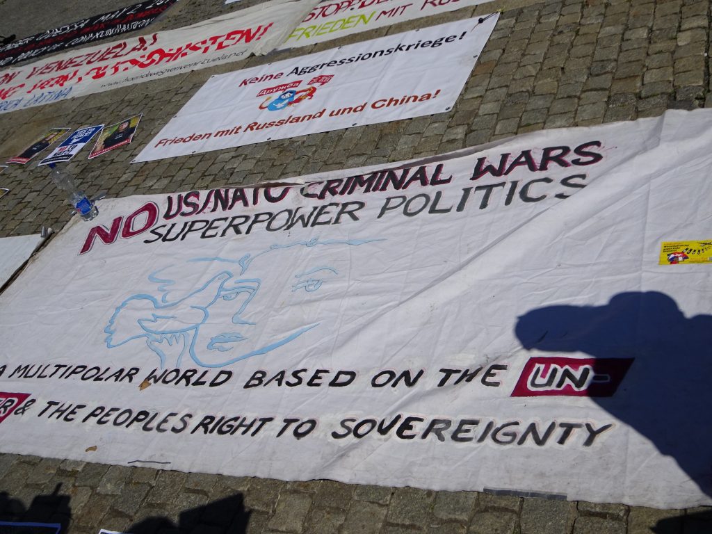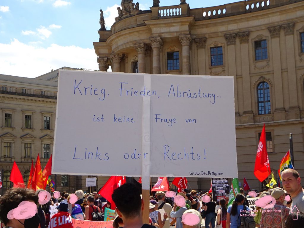 Von den Redebeiträgen habe ich wenig mitbekommen, da ich mich mit mit weit angereisten Genoss*innen aus der DFG-VK über den Sinn und Zweck der Veranstaltung ausgetauscht habe. Ein ebenfalls anwesender Genosse berichtete, DKP-Chef Köbele habe zu Beginn der Kundgebung erklärt, „wir“ hätten unterschiedliche Ansichten zum Krieg in der Ukraine, aber das sei nicht so wichtig, weil uns die Ablehnung der NATO eine. Eine Demo, auf der es egal ist, wie man zu einem Angriffskrieg steht, ist definitiv nicht meine. Wir haben dann die Demo verlassen.