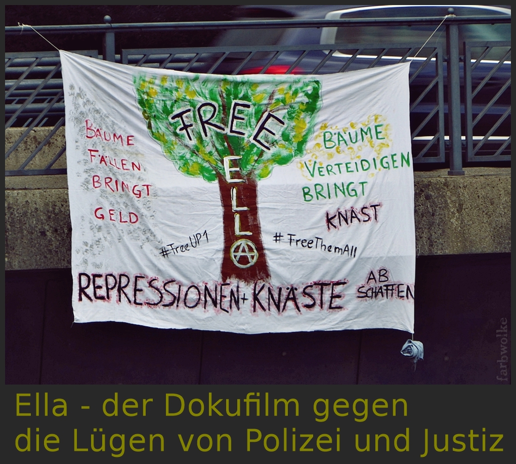 „Der Film „Ella“ ist eine Antwort auf die Justizskandale. Solidarische Zusammenhänge haben in akribischer Recherchearbeit einen Dokumentationsfilm erstellt, der klar belegt, was an dem verhängnisvollen 26.11.2020 im Dannenröder Wald wirklich geschah.