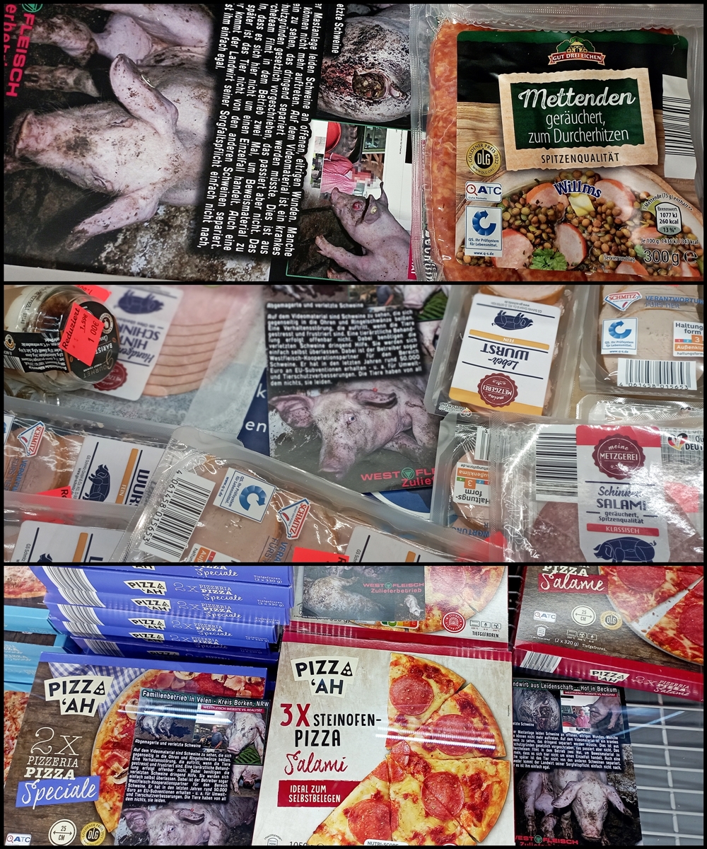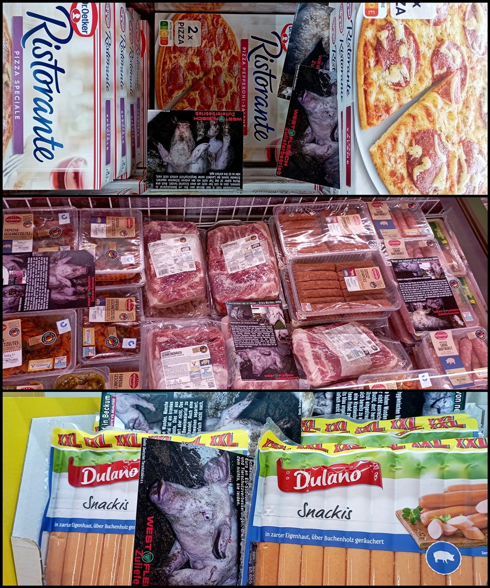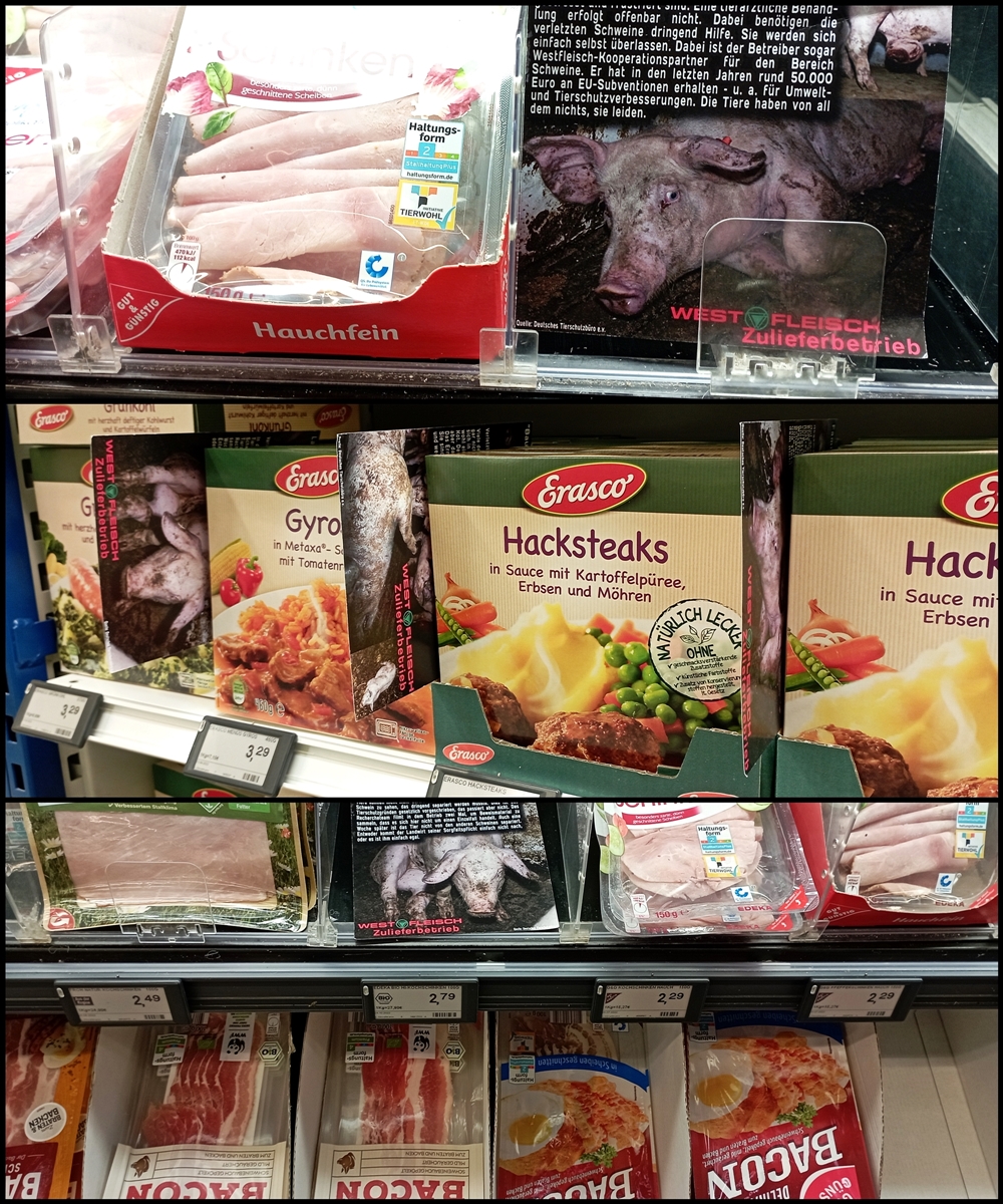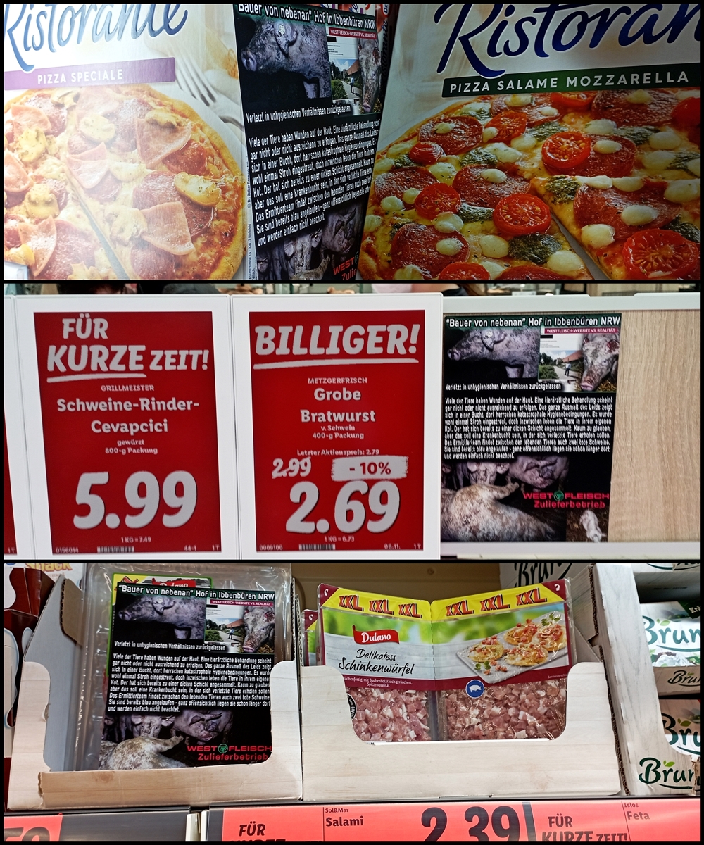 Uns ist wichtig zu sagen, auch wenn nicht alle Produkte auf den Bildern von Westfleisch Zulieferbetrieben stammen, geht es im Grunde um dieselbe Sache: jegliche Tierausbeutung gehört abgeschafft.