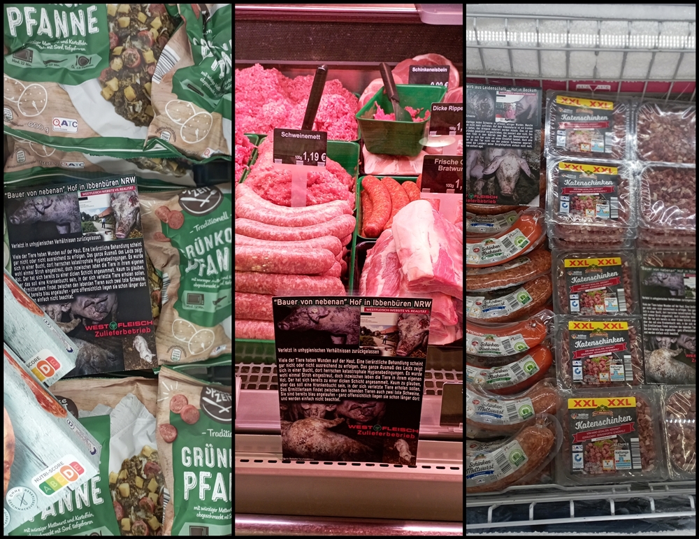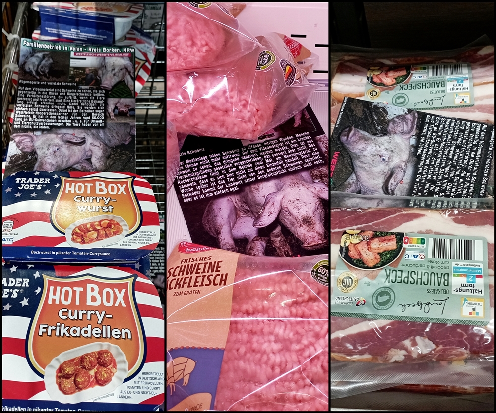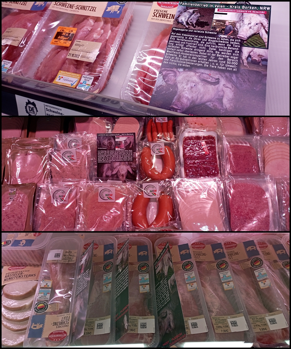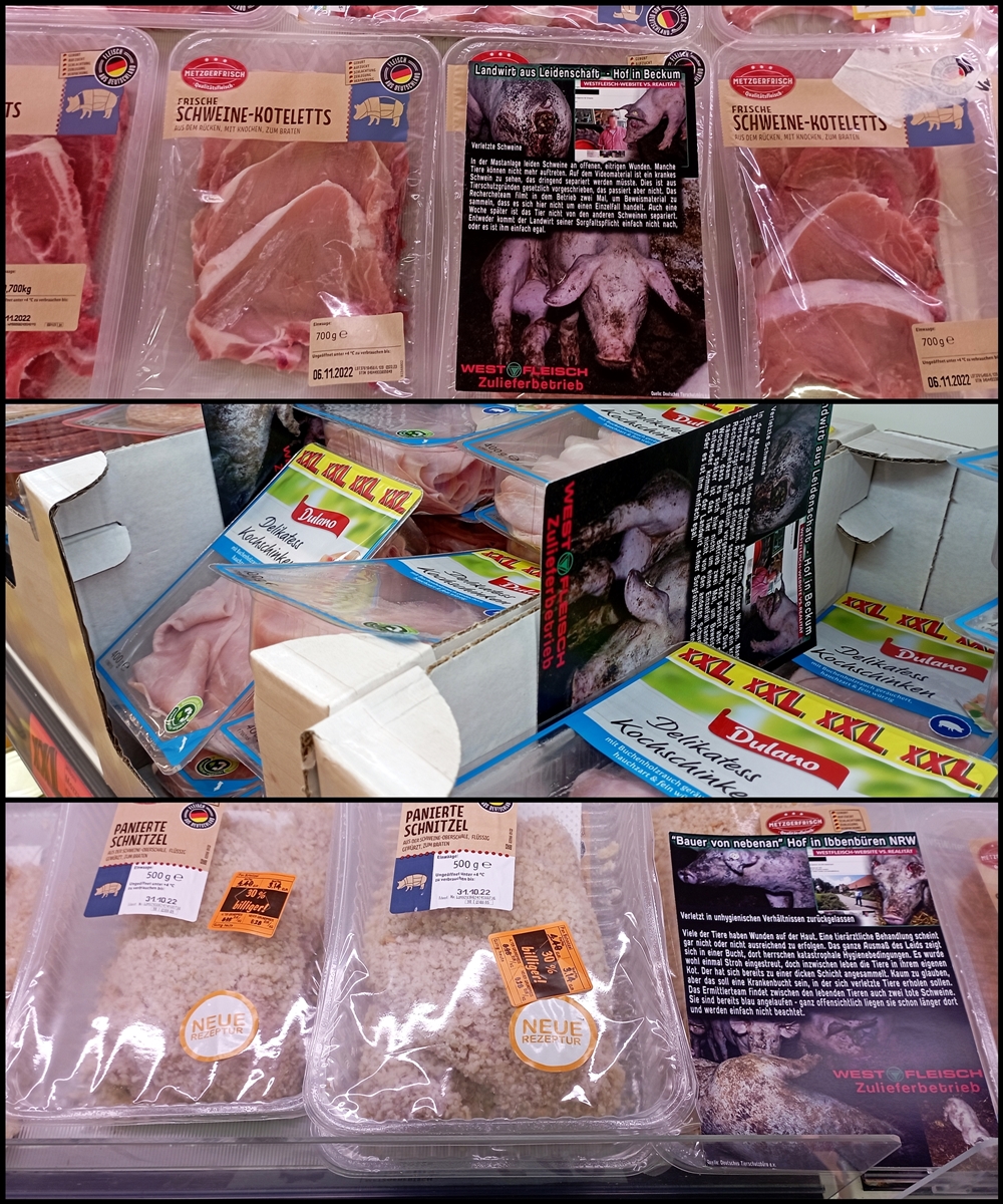Uns ist wichtig zu sagen, auch wenn nicht alle Produkte auf den Bildern von Westfleisch Zulieferbetrieben stammen, geht es im Grunde um dieselbe Sache: jegliche Tierausbeutung gehört abgeschafft.