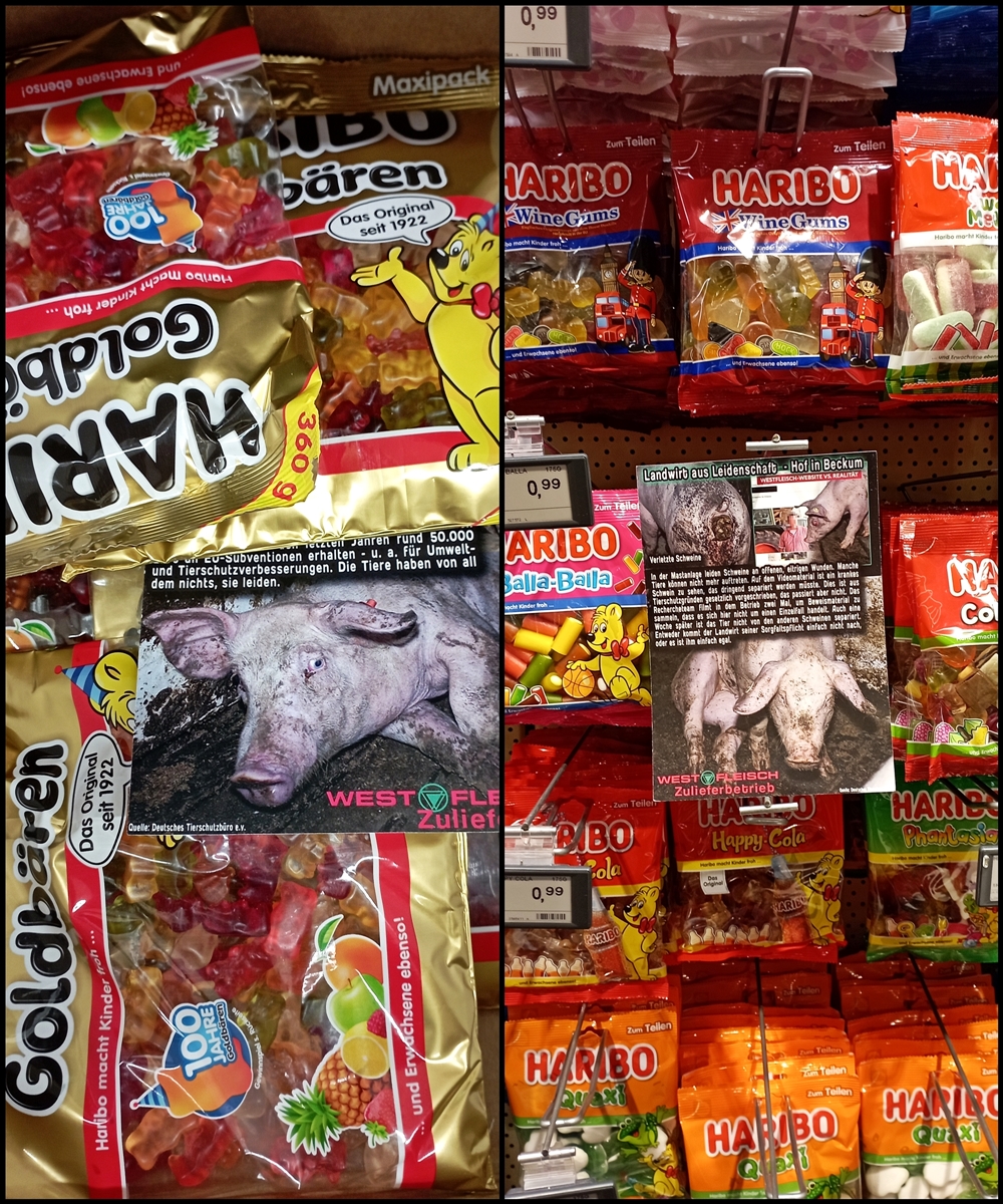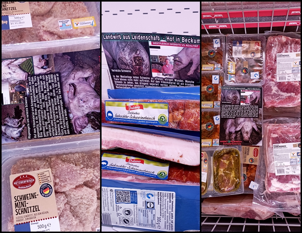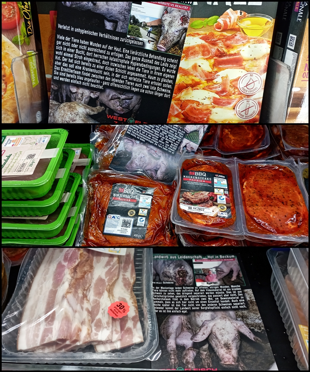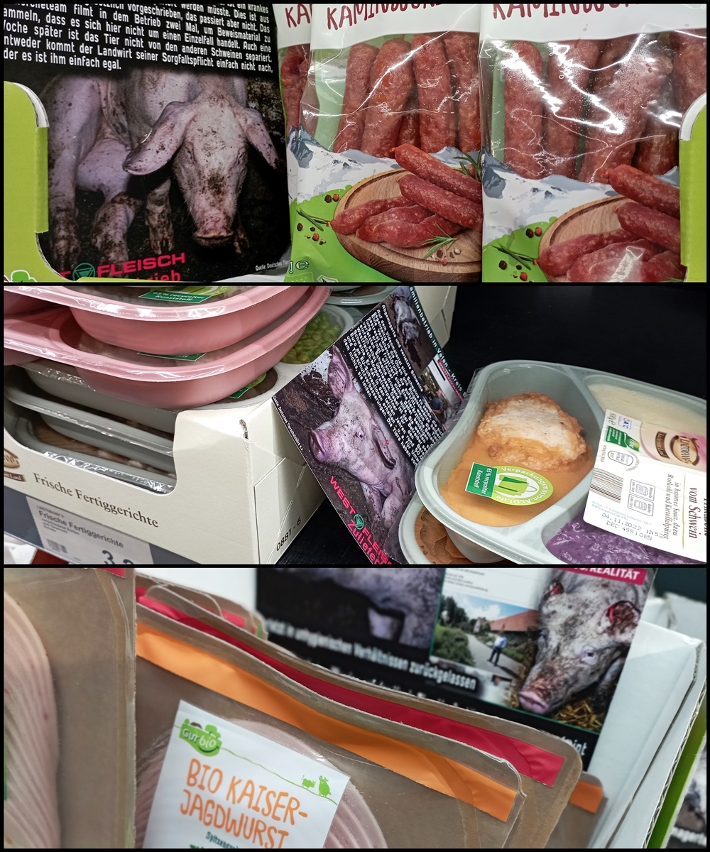 Uns ist wichtig zu sagen, auch wenn nicht alle Produkte auf den Bildern von Westfleisch Zulieferbetrieben stammen, geht es im Grunde um dieselbe Sache: jegliche Tierausbeutung gehört abgeschafft.