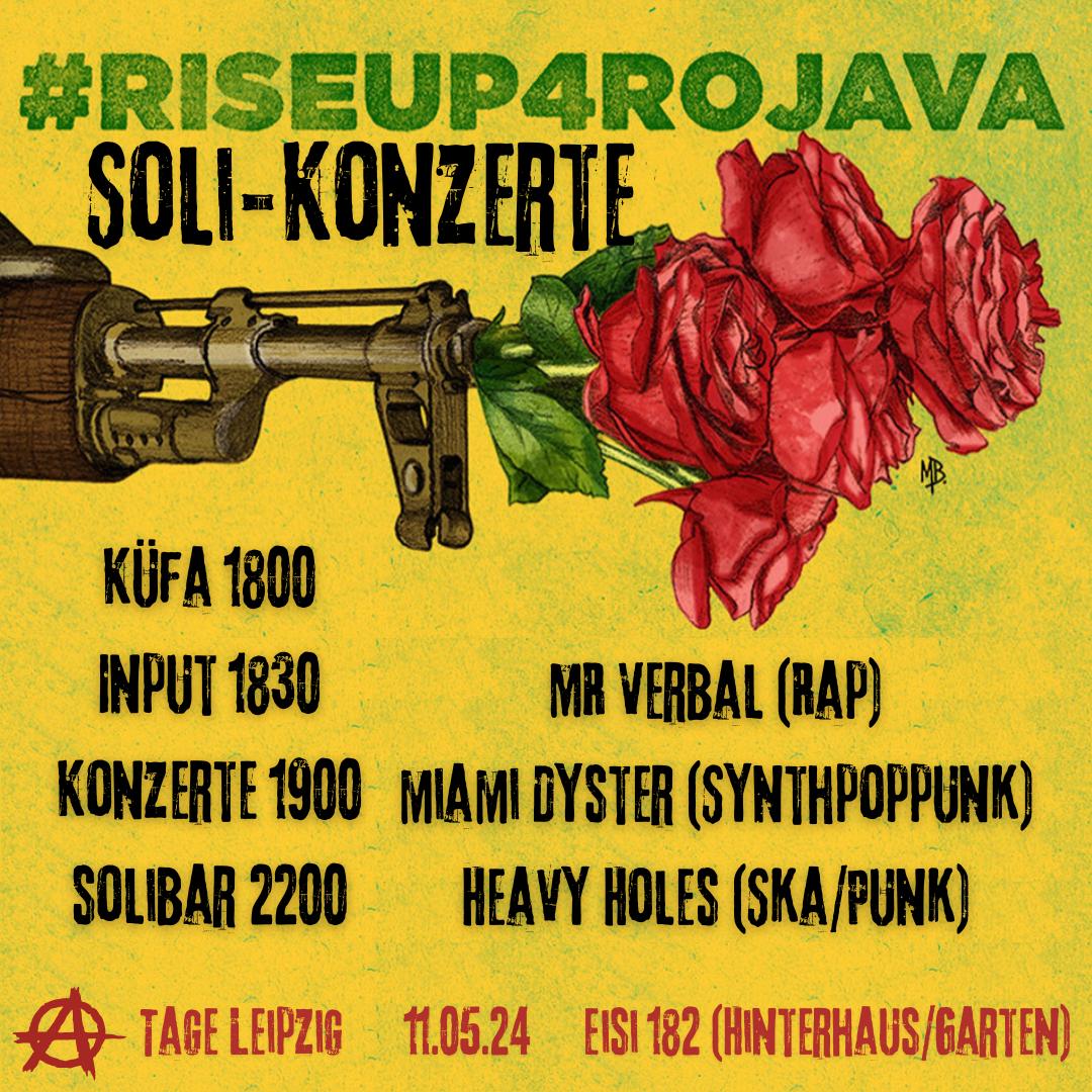 For years, the Kurdish freedom movement has been subjected to military attacks by the authoritarian Erdoğan regime and other Islamist threats. Together with the group Defend Kurdistan, we want to show our solidarity with the affected people and collect donations for the Kurdish Red Crescent as part of the anarchist days. Therefore, on Saturday, May 11th, starting at 6pm, there will be food, concerts, and a bar in the backyard garden of Eisi 182.