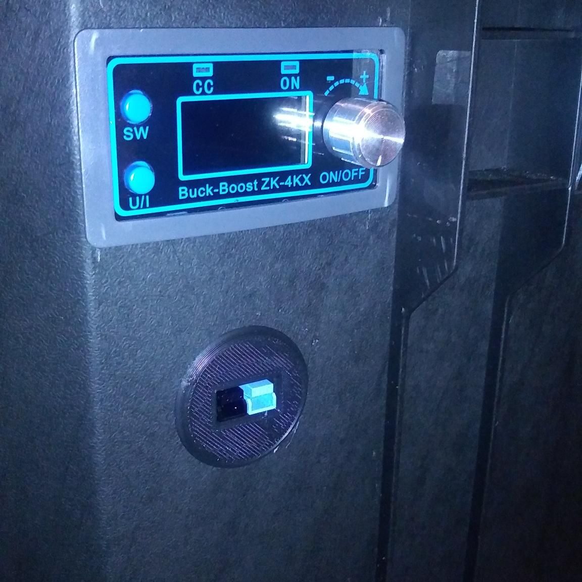 Due to the relative inefficiency of AC inverters, and an abundance of DC devices that require voltages other than 12V or 5V, we decided to do something we haven’t seen on other battery boxes. We’ve added a constant-current (CC) constant-voltage (CV) buck-boost converter. This is an adjustable DC-DC converter that can step the voltage up or down from 12V and supply it to a device at a specified current.