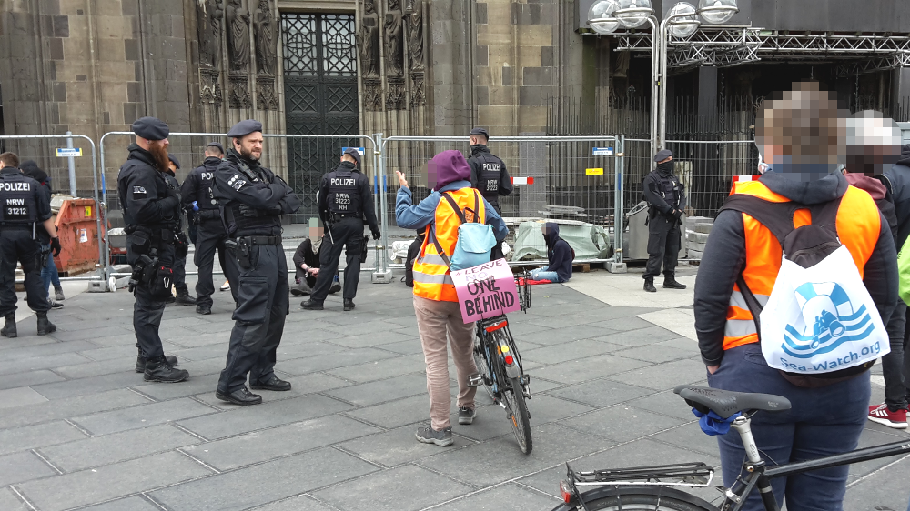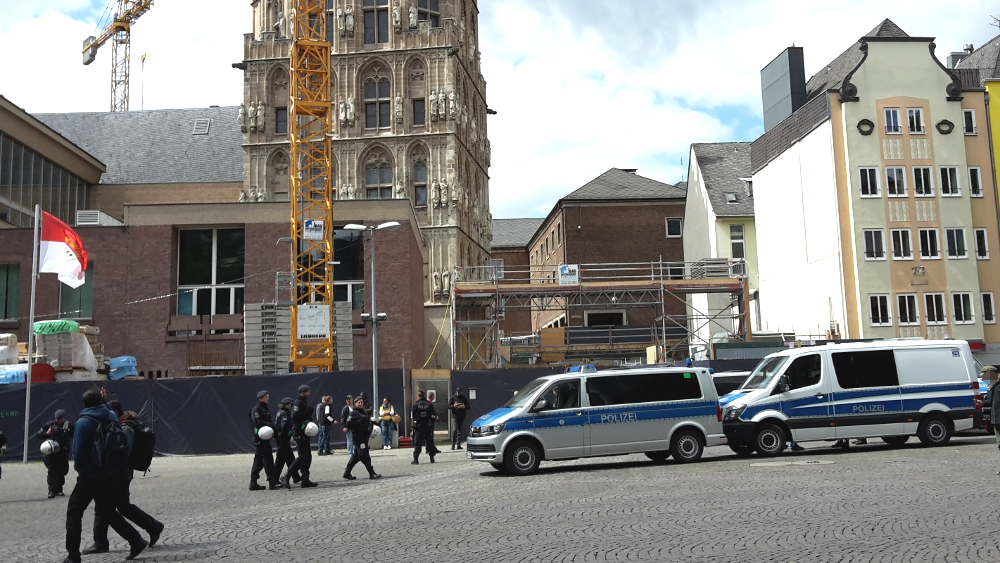 Am Altermarkt und am Hauptbahnhof hatte die Polizei insgesamt rund 30 rechte Hooligans angehalten, die wohl einem antisemitischen Aufruf zum Heumarkt gefolgt waren. Die Lage in der Altstadt war teilweise unübersichtlich und am Dom haben Beamt*innen auch von mehreren linken Demonstrant*innen die Personalien aufgenommen. Dort hatten sich den Tag über dutzende Feminist*innen und Antirassist*innen der Kampagne „Seebrücke“ zu Protesten versammelt.