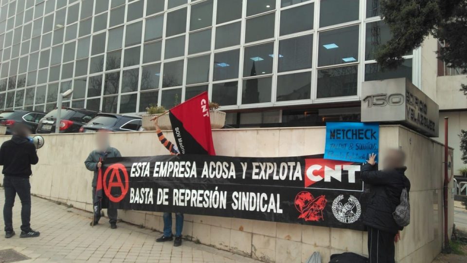Schon mehrfach haben Mitglieder der CNT-IAA Madrid gegen die Entlassung ihres Genossen Enrique protestiert, der sich jahrelang für seine Kolleg*innen eingesetzt hatte, damit alle ihr Recht auf geregelte Arbeitszeiten und Urlaub wahrnehmen können. Auch gegen geschlechtliche Diskriminierung im Betrieb war er stets aktiv, bis er wegen seiner Gewerkschaftstätigkeit schließlich selbst gemobbt und gefeuert wurde.