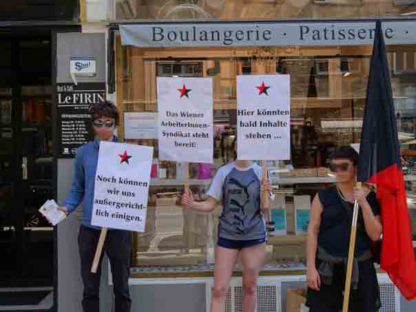 Das Wiener Arbeiter*nnen-Syndikat (WAS-IAA) führt zur Zeit sechs Arbeitskämpfe gleichzeitig, unter anderem bei der Aufback-Kette „Le Firin“. Seit einigen Wochen stehen die Basisgewerkschafter*innen mit der Firmenleitung in Kontakt und unterstützen die Forderung von zwei Kolleg*innen wegen Nachzahlungen im fünfstelligen Bereich.