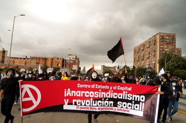 „Wir, verschiedene anarchistische Gruppen, Kollektive und Organisationen, äußern uns heute öffentlich gegen die Steuerreform mit ihren erhöhten Abgaben auf lebenswichtige Güter des täglichen Bedarfs. Aber nicht nur, weil wir die Reform als einen organisierten Raubzug aus die Taschen der Arbeiter*innenklasse, der Bauer*innenn, der Dienstleistungsarbeiter*innen, der Selbstständigen und Freiberufler*innen betrachten. Sondern auch, weil wir das Versagen, das diese uribistische Regierung von Iván Duque ausmacht, und das Desaster, das der gesamte Staatsapparat dieses Landes ist, deutlich machen. Der mit öffentlichen Maßnahmen, Gesetzen, Dekreten, Medienpropaganda und billigem Nationalismus versucht hat, den organisierten Raub zu verbergen, der in Wirklichkeit über die Gesamtheit der Menschen in dieser Region des Kontinents läuft.