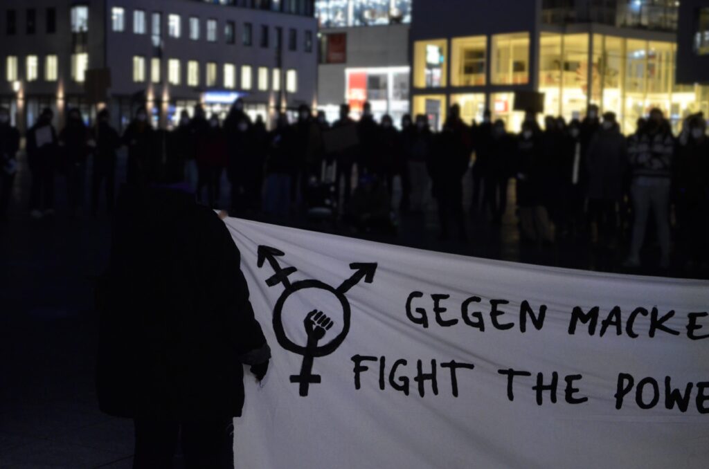 Our group was founded before March 8, 2022, the feminist day of struggle – we call it that because feminism brings important achievements for absolutely all gender identities and it’s not just about cis women, it’s about all of us! On this day, we organized a demonstration that was both militant and empowering thanks to the many wonderful people who came together. It is important to us to create structures for empowerment and safer spaces. That’s why there has been a FLINTA* bar in Ulm for some time now, where FLINTA*s can get to know each other, network and simply have fun. There can be no feminist liberation without also fighting economic and power relations. In our view, patriarchy and capitalism, as well as other forms of structural discrimination such as racism, antisemitism, ableism, are links, and must be considered and combated together.
