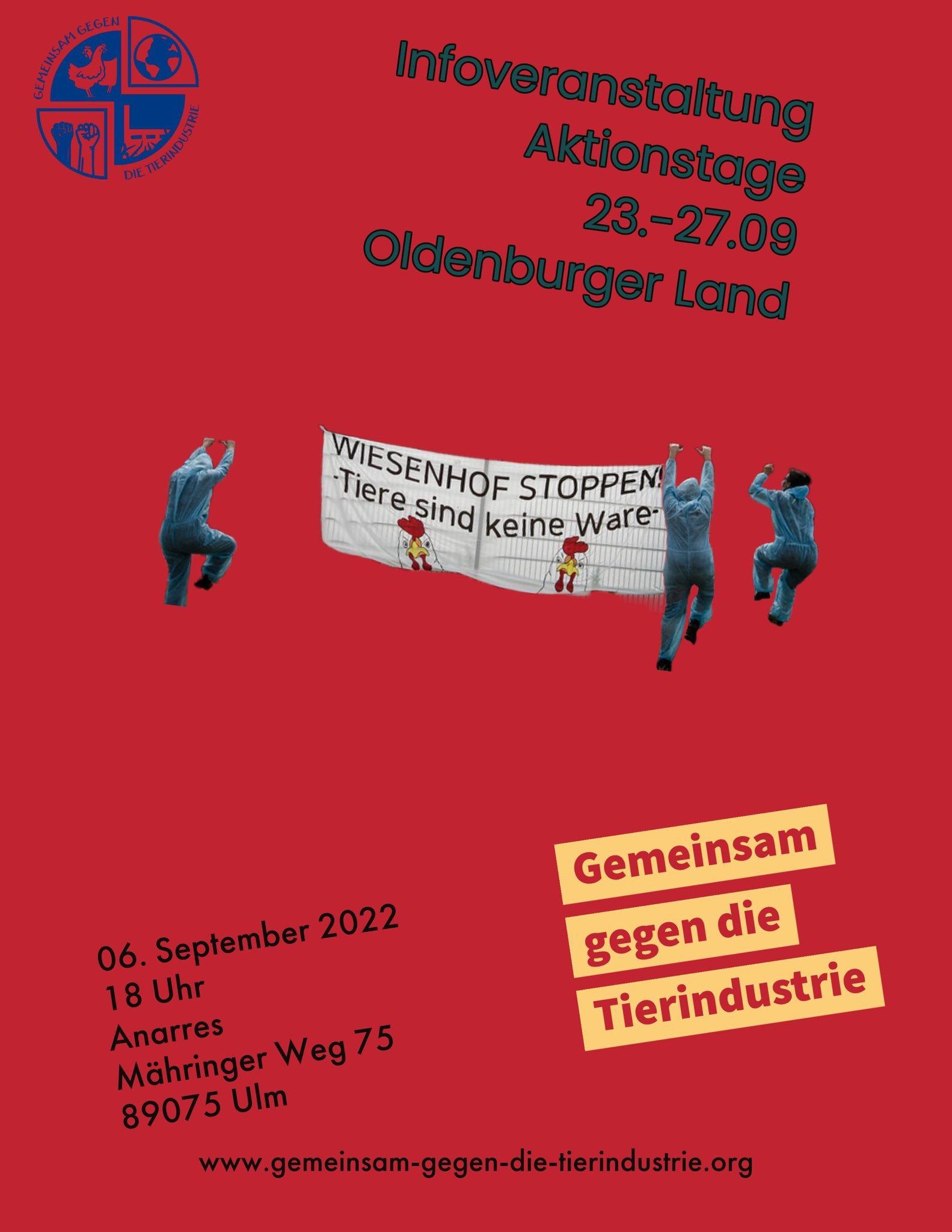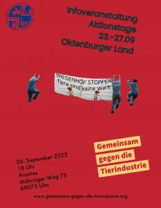 Vom 23. bis 27. September ruft das Bündnis „Gemeinsam gegen die Tierindustrie“ zu Aktionstagen für eine solidarische und ökologische Agrarwende im Oldenburger Land (Niedersachsen) auf. Im Hotspot der Tierindustrie und der Fleischkonzerne wird es ein Aktionscamp, eine Großdemo sowie kraftvolle und ungehorsame Aktionen gegen Tierausbeutung, Natur- und Klimazerstörung und erniedrigende Arbeitsbedingungen geben