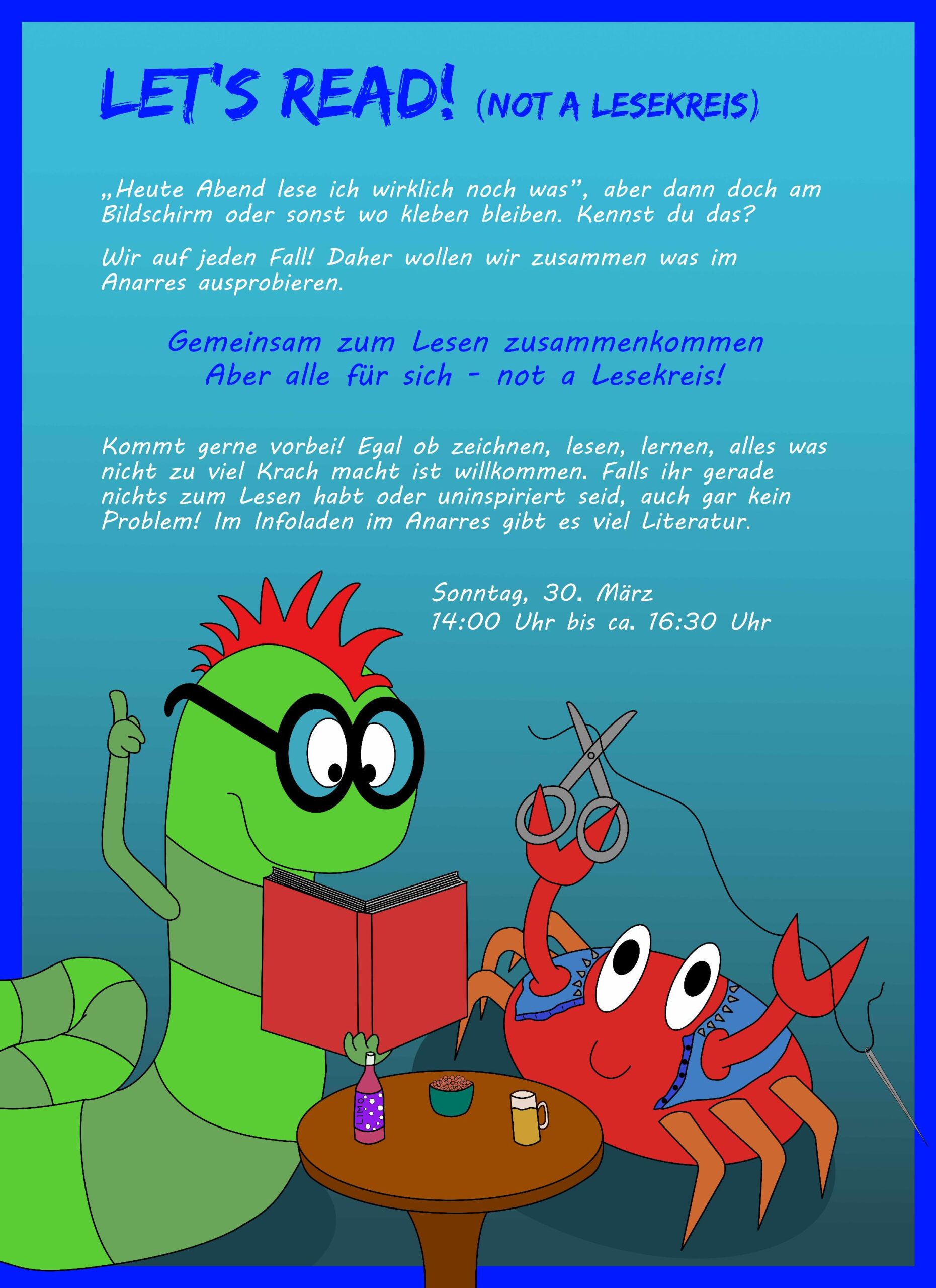Am Sonntag 30.03. wird in der Festung gelesen! Lets Read (not a Lesekreis) kehrt zurück ins Anarres. Die Idee: zusammen kommen zum lesen.