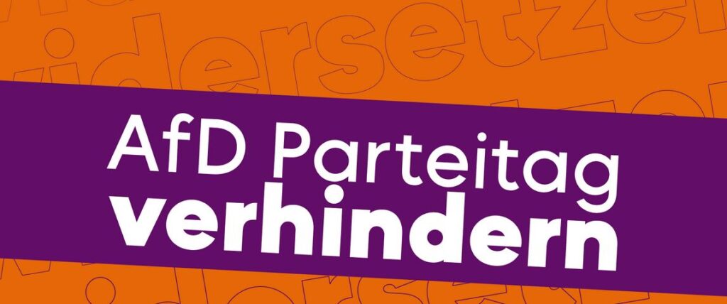 Vom 28. – 30. Juni findet in Essen der AfD Bundesparteitag statt. Ein breites Bündnis ruft zu Blockaden der anreisenden AfD Mitglieder auf. Diesen Protesten wollen wir uns am 29. Juni anschließen und gemeisam mit euch die Anreise sowie einen möglichen Aktionsablauf besprechen. Kommt am 21. Juni um 20 Uhr zur Vorbereitungsveranstaltung ins Antifaschistische Café.